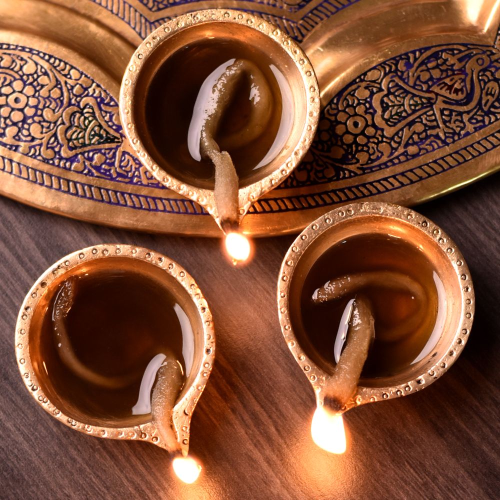 Ghee, mustard oil, or sesame oil are best for traditional rituals.