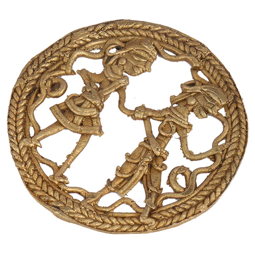 Brass Round Wall Art Tribal Couple Figure  Suitable for your home Interiors, corporate places, hotels , spas and restaurants. Gift it to your near and dear ones on Diwali, New year, Christmas and house warming party.
