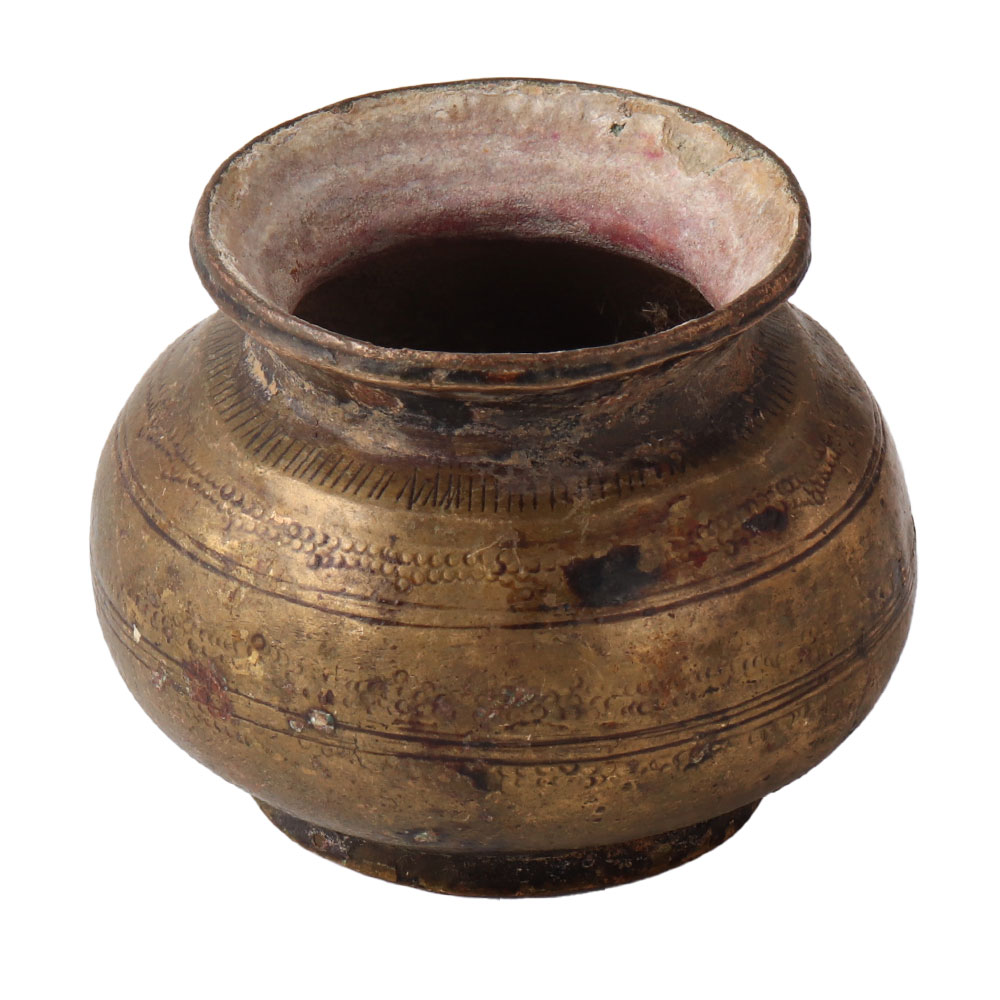 • Brass Round Water Pot With Fine Carving