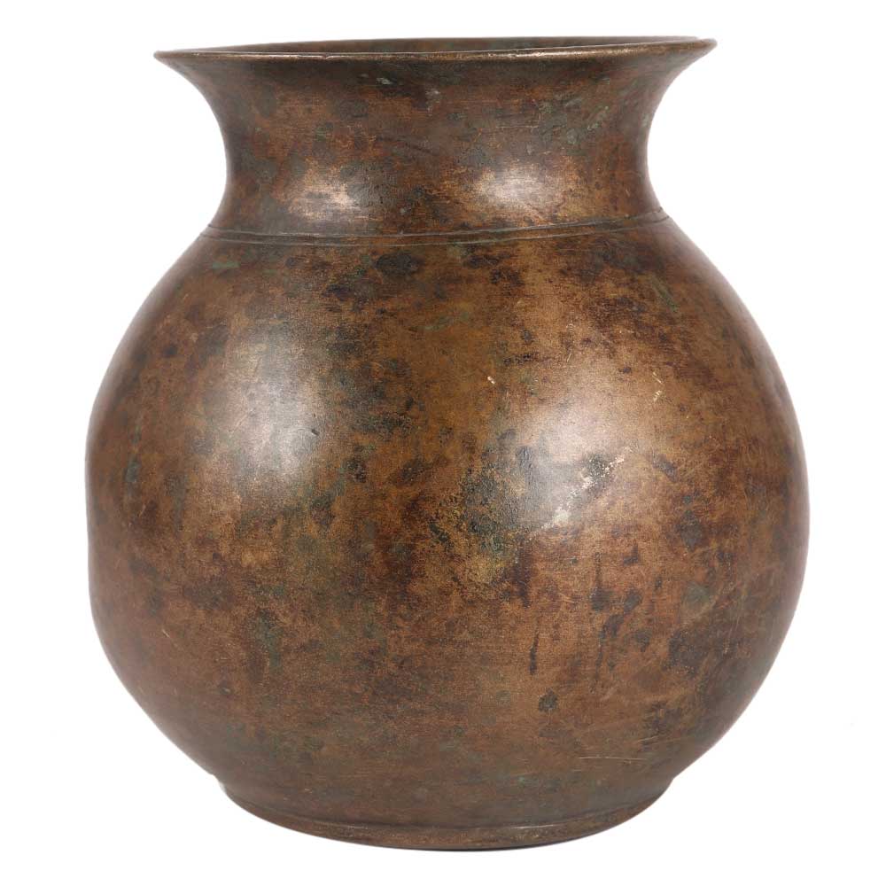 • Brass Round Water Storage Pot In Antique Finish