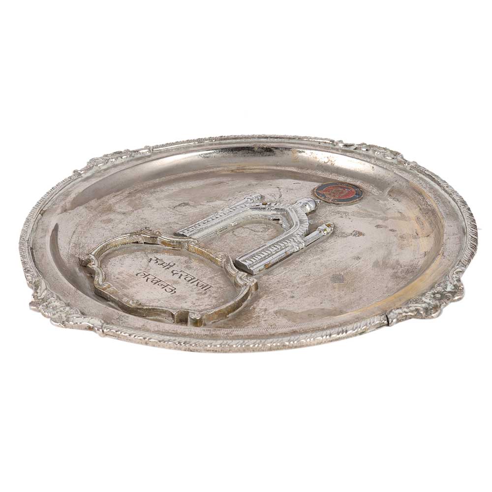 Brass Ruhi Darwaza Carved Tray In Silver Finish