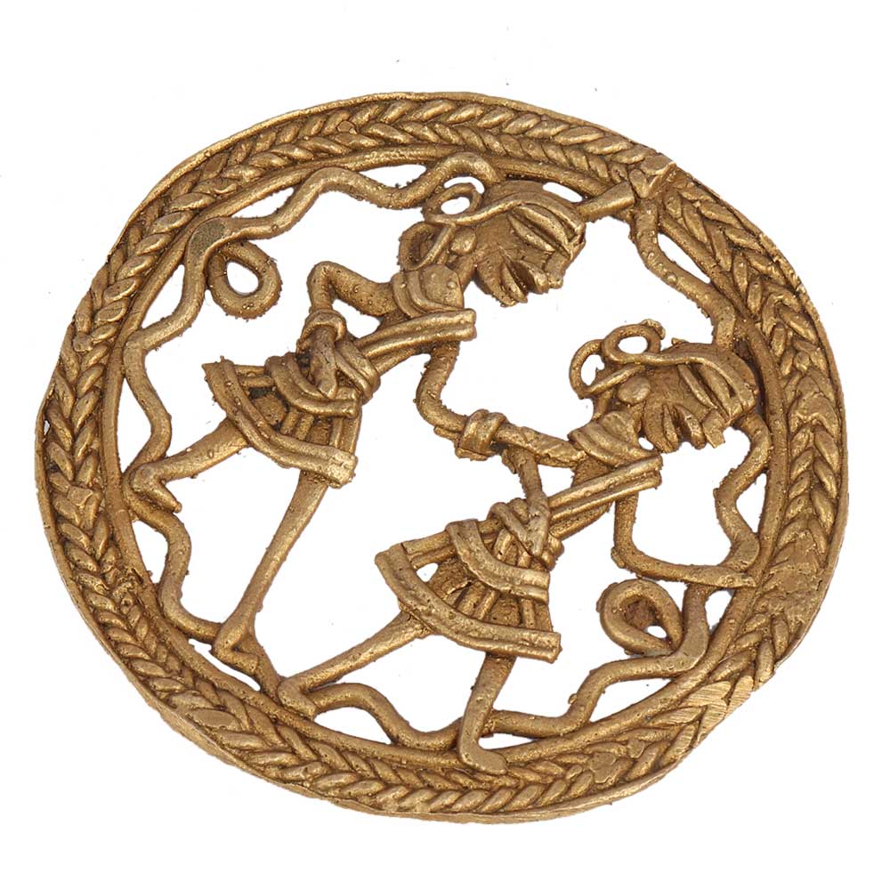 Brass Rural Dancing Couple Round Wall Art using the idea of daily activities here it depicts a dancing couple . You can frame it and mount it on a wall , Corridor ,Place it on your study table. Diwali gift, anniversary gift, house warming gift , souvenir and showpiece.