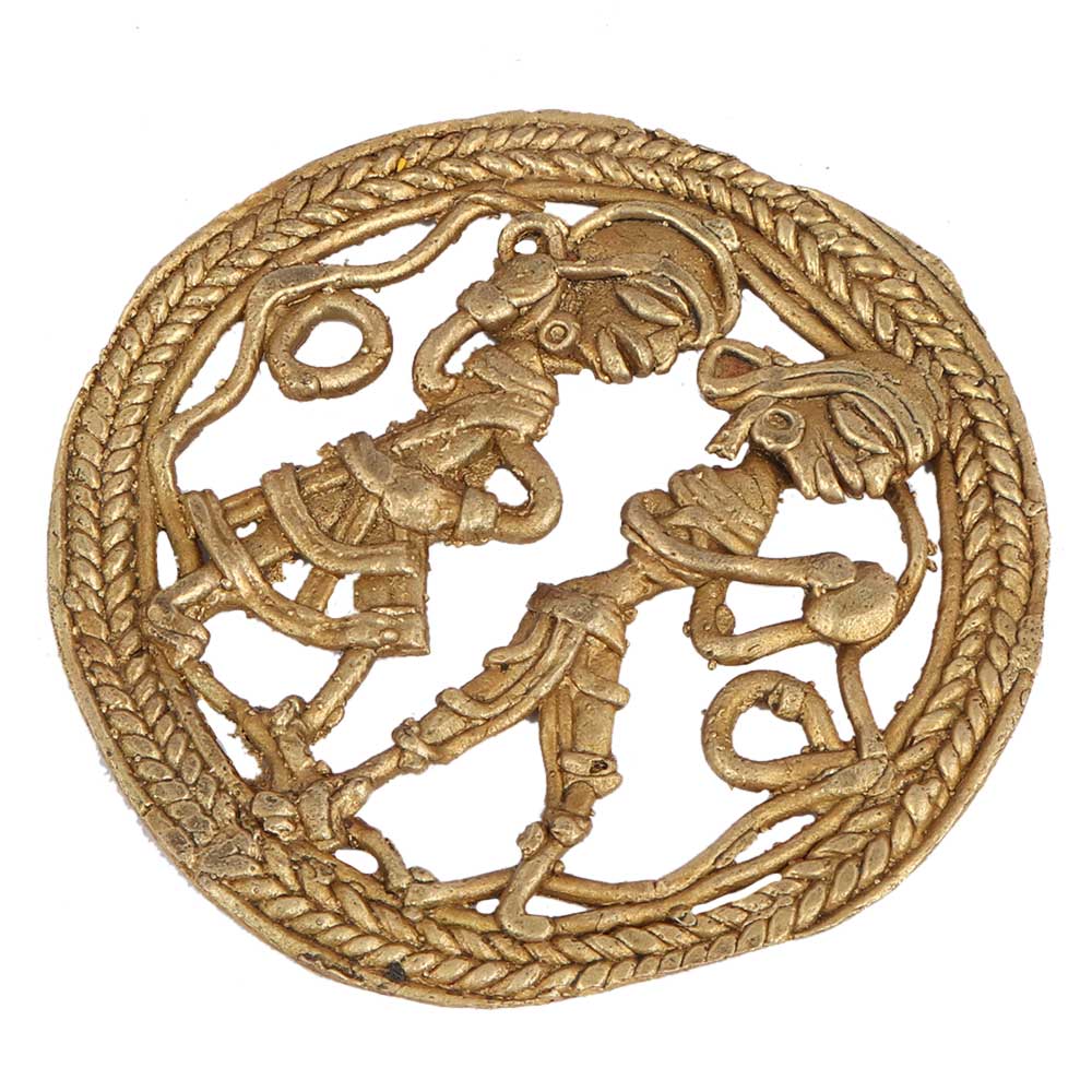 Brass Rustic Dhokra Wall Art Man Playing Flute Woman Dancing