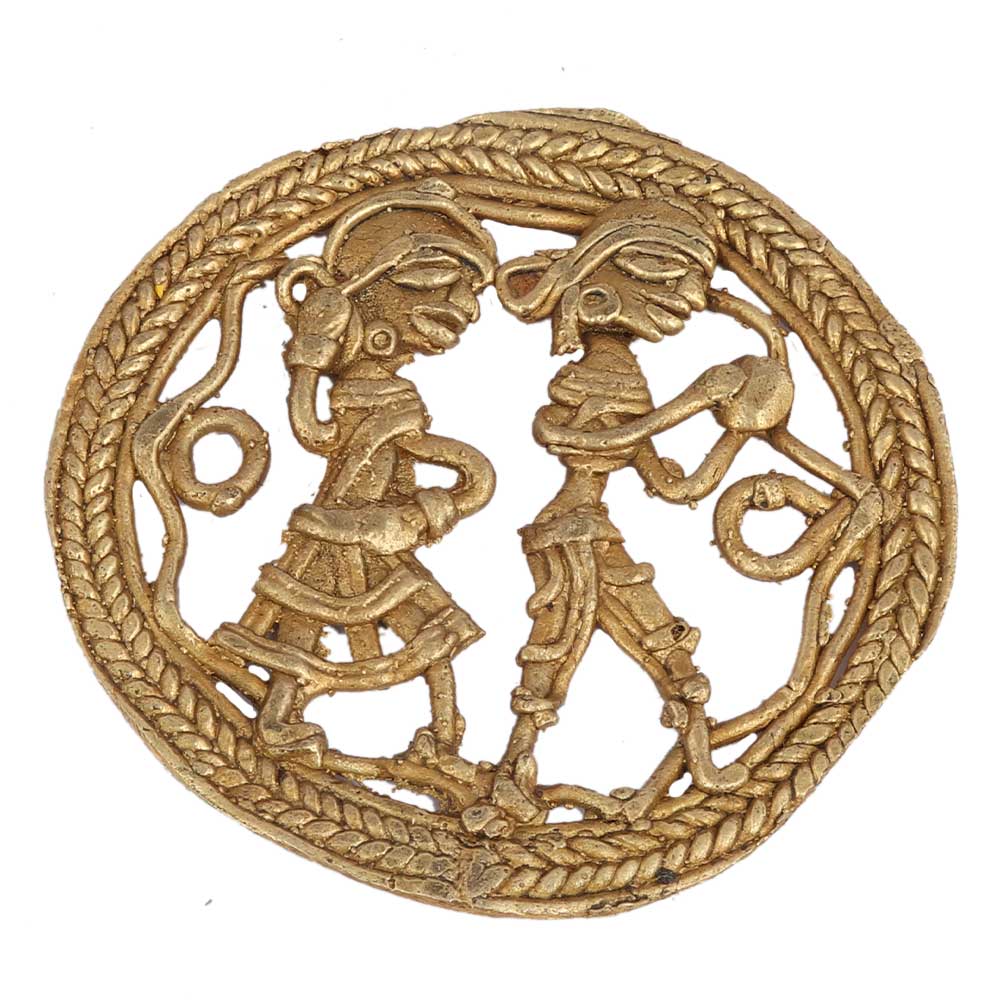 • Brass Rustic Dhokra Wall Art  Man Playing Flute Woman Dancing
