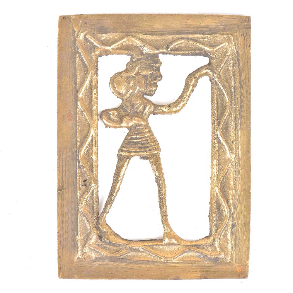 • Brass Rustic Dhokra Wall Hanging Tribal Lady Dancing