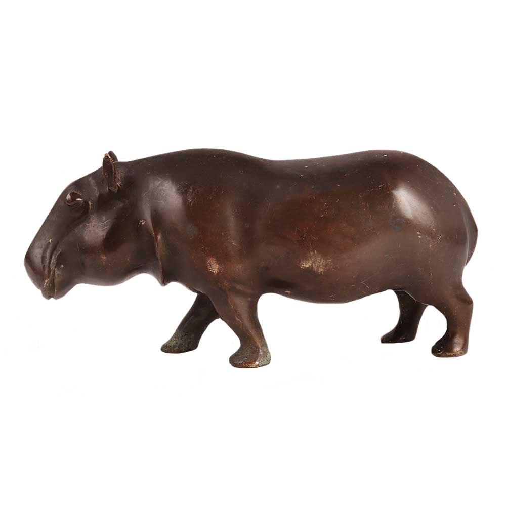 • Brass Safari Hippopotamus Statue In Dark Finish