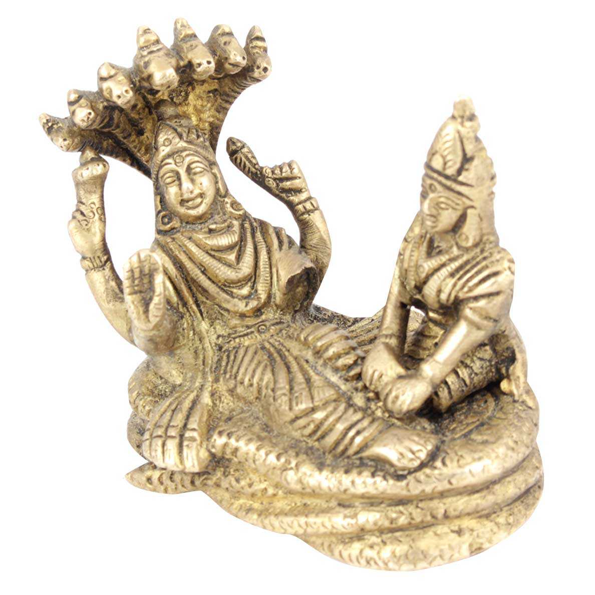• Brass Sculpture of Lord Vishnu and Lakshmi Resting on Sheshnag