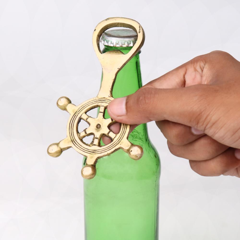 Crafted from solid brass, this bottle opener is built to last. Its sturdy construction can withstand regular use while maintaining its aesthetic appeal. Whether you're opening a cold beer or a bottle of soda, you can rely on the strength and durability of the Brass Ship Wheel Bottle Opener for years to come.