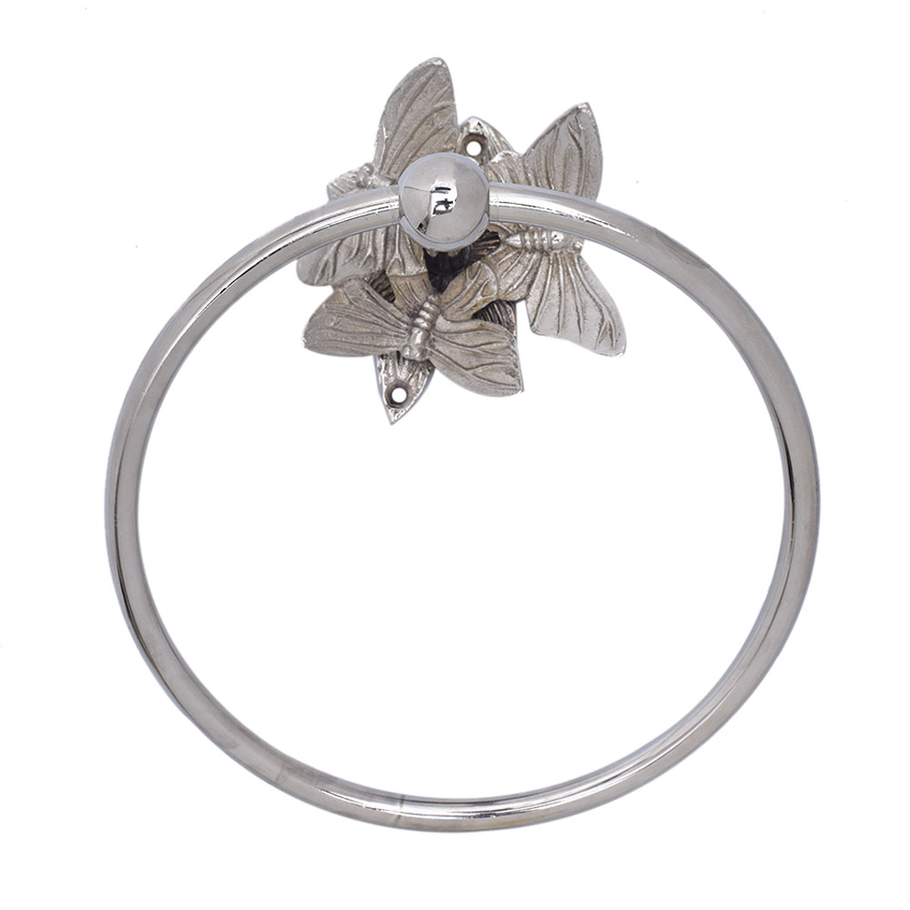 Q: Can this towel ring hold heavy towels? Q: Will the silver finish tarnish or fade? Q: Is the butterfly motif hand-carved? Q: Is it rust-proof? Q: Does it include installation screws?