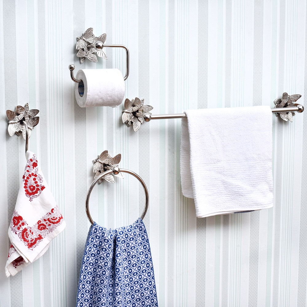 Bring charm and utility to your bathroom with the Brass Silver Butterfly Towel Ring—a handcrafted accessory that combines delicate artistry with sturdy functionality. Made from high-quality brass and finished in a lustrous silver tone, this towel ring features a beautifully sculpted butterfly at the top, adding a whimsical and refined accent to your wall. Thoughtfully designed for daily use, it holds towels securely while enhancing your space with timeless elegance.