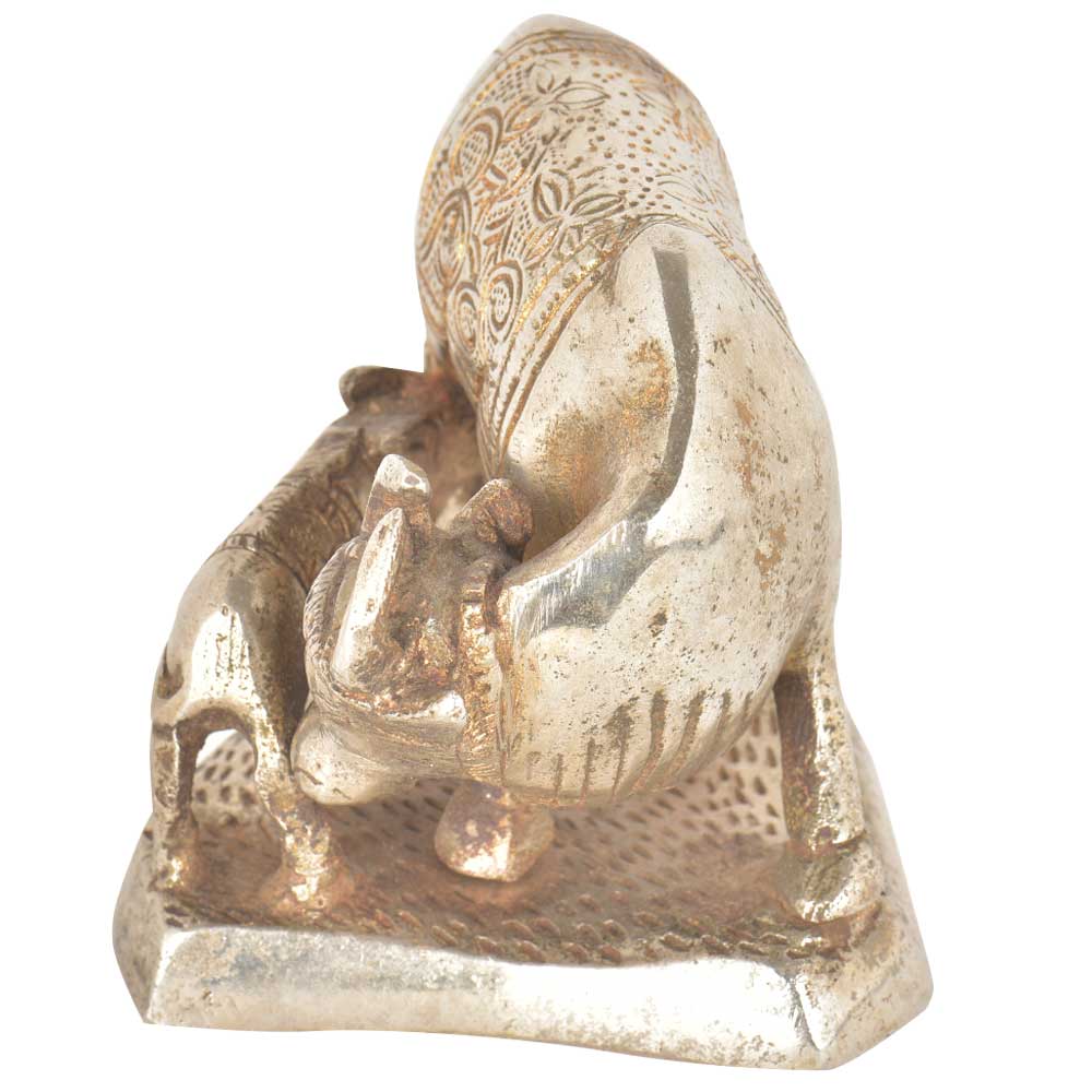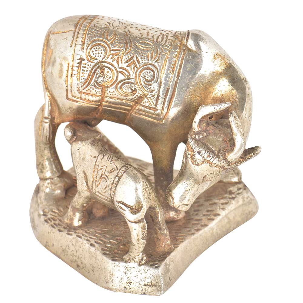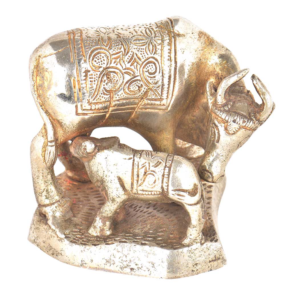 • Brass Silver Plated Cow Feeding Her Calf