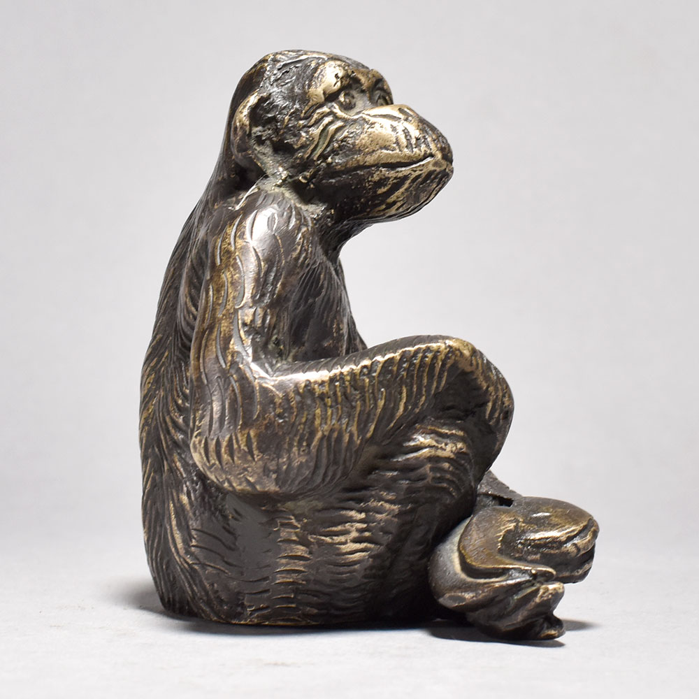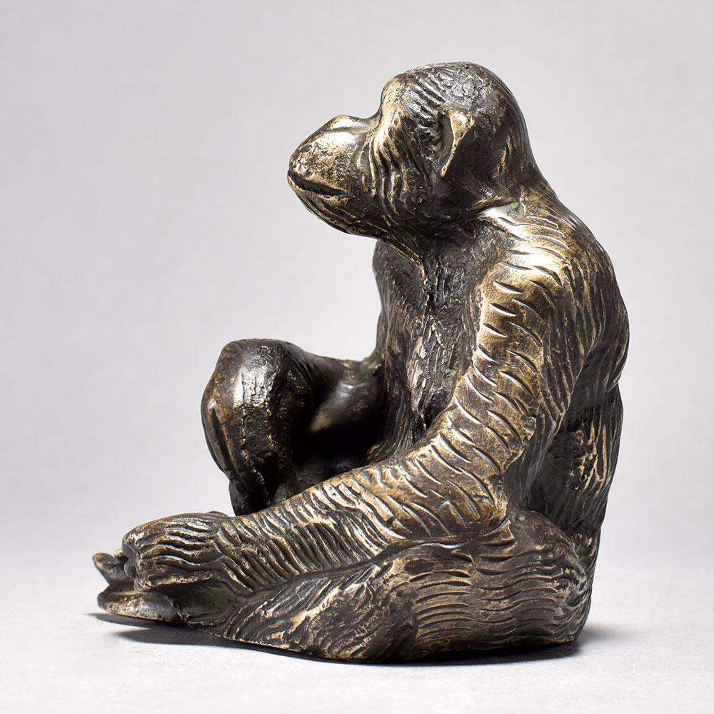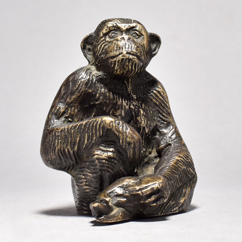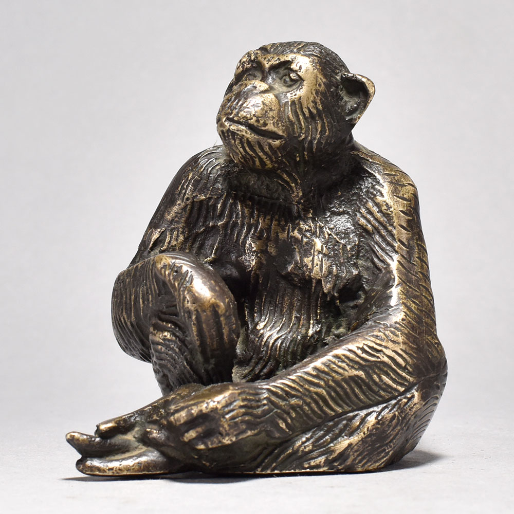 Bring the majesty of the jungle into your home with this captivating brass chimpanzee figurine.This exquisite brass chimpanzee figurine is a celebration of the natural world. Its intricate, lifelike details and warm, metallic finish will command attention in any room, transporting you to the heart of the wild with a simple glance. Whether displayed on a mantle, side table, or bookshelf, this distinctive piece is sure to elevate your decor and spark wonder in all who see it. Crafted from solid brass for exceptional durability and a lustrous shine Depicts a chimpanzee in a thoughtful, sitting pose Inspired by the rich art and culture of England Makes a stunning centerpiece or conversational accent piece This unique handcrafted piece is a testament to traditional artistry, blending functionality with beauty and making it a treasured collectible for years to come.