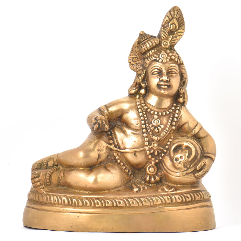 • Brass Sitting Makhan Eating Krishna Idol