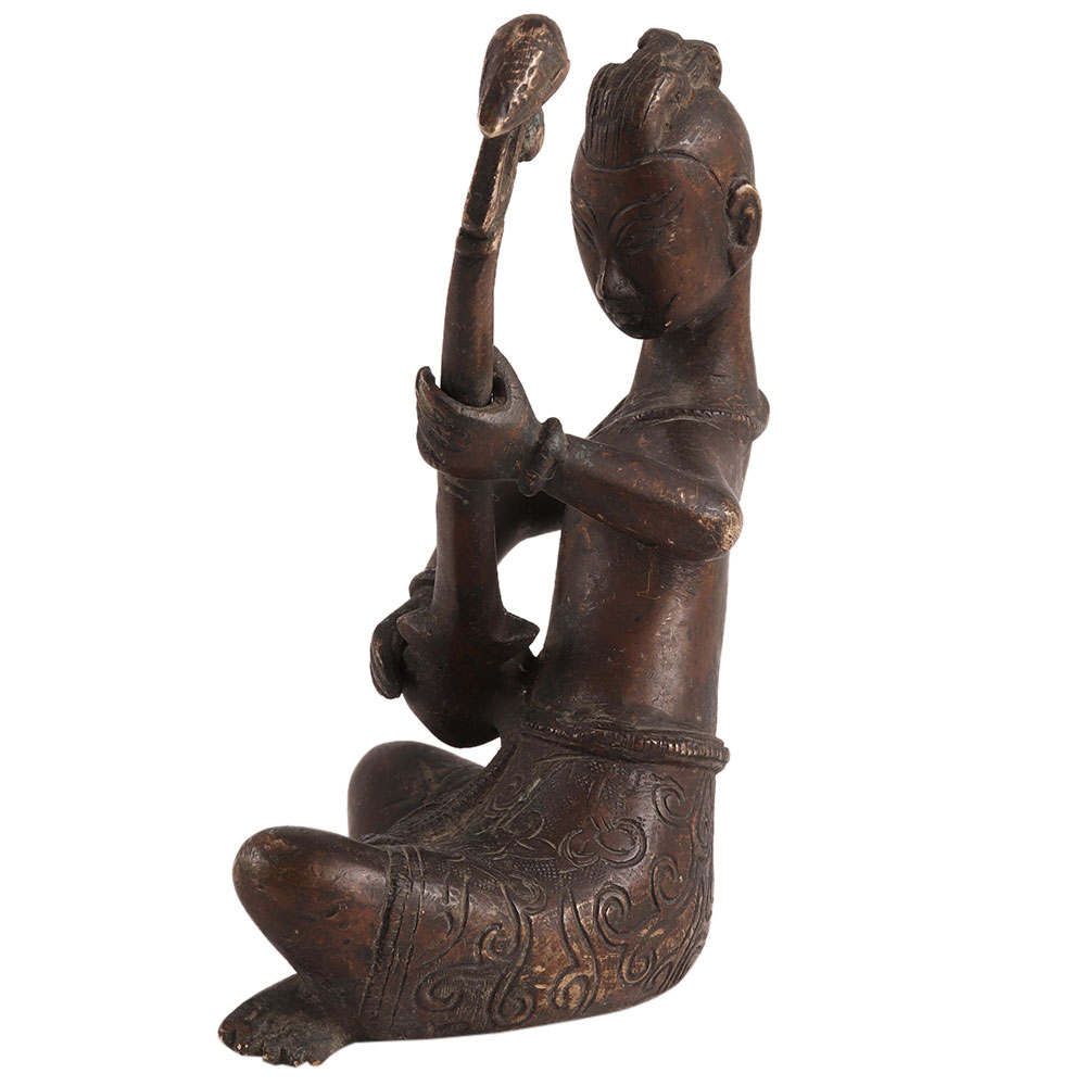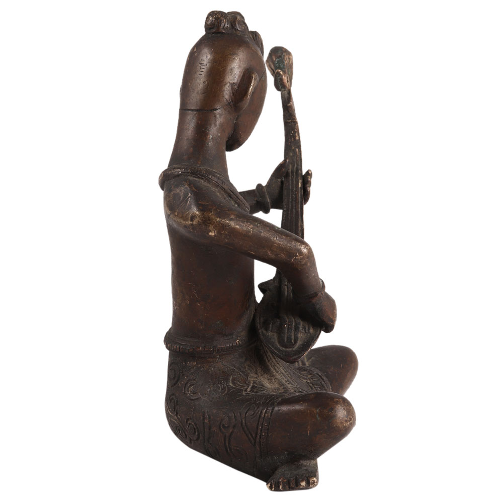 • Brass Sitting Musician Statue With Veena Musical Instrument