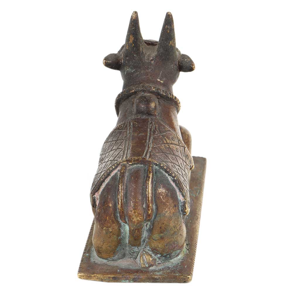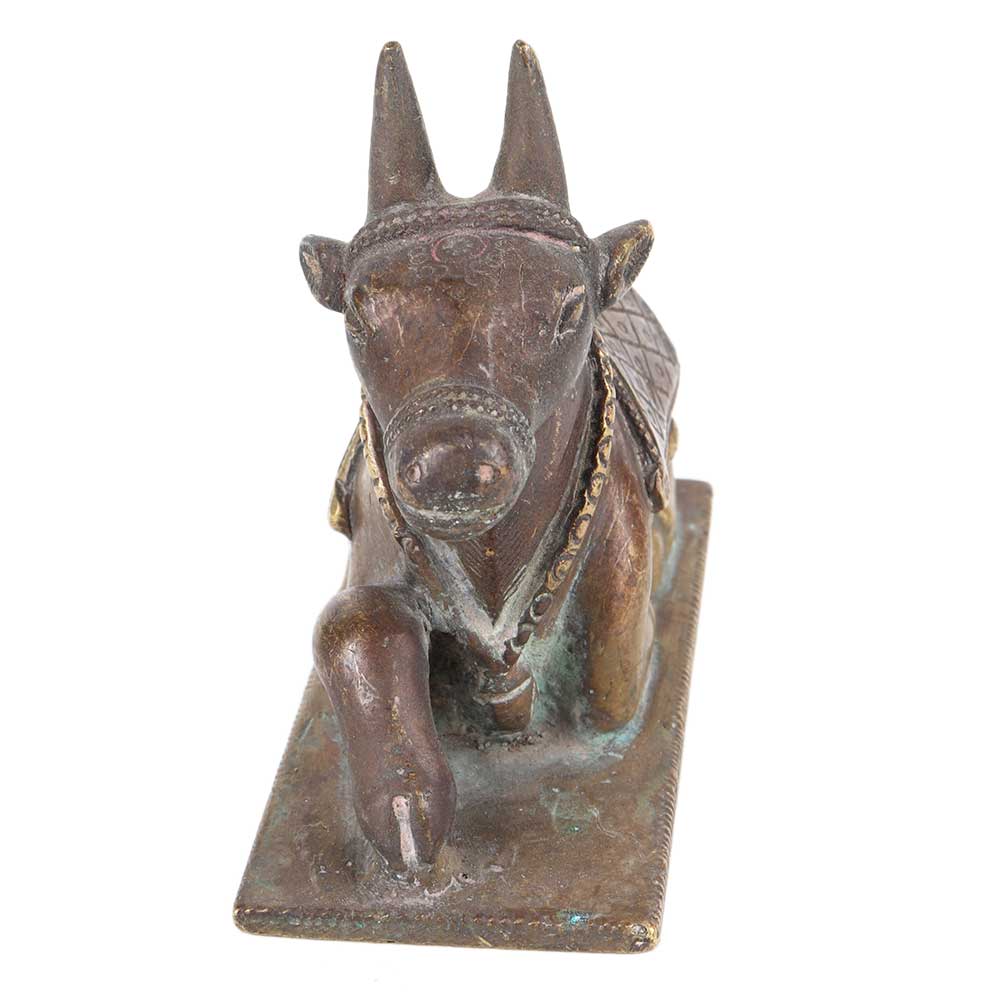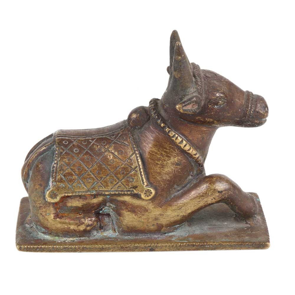 Lovely Carved brass Sitting Nandi Statue Makes it Perfect to Be Kept in Luxurious and Modern Drawing Rooms as a Symbol of Luck, Wealth and Prosperity. These Antiquated Looking Nandi Statues is Absolutely Ideal for Gift Purposes.