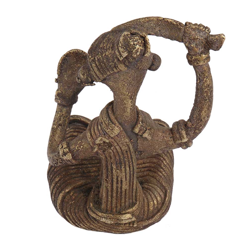 Brass Sitting Tribal Women Combing Hair looking Into A Mirror