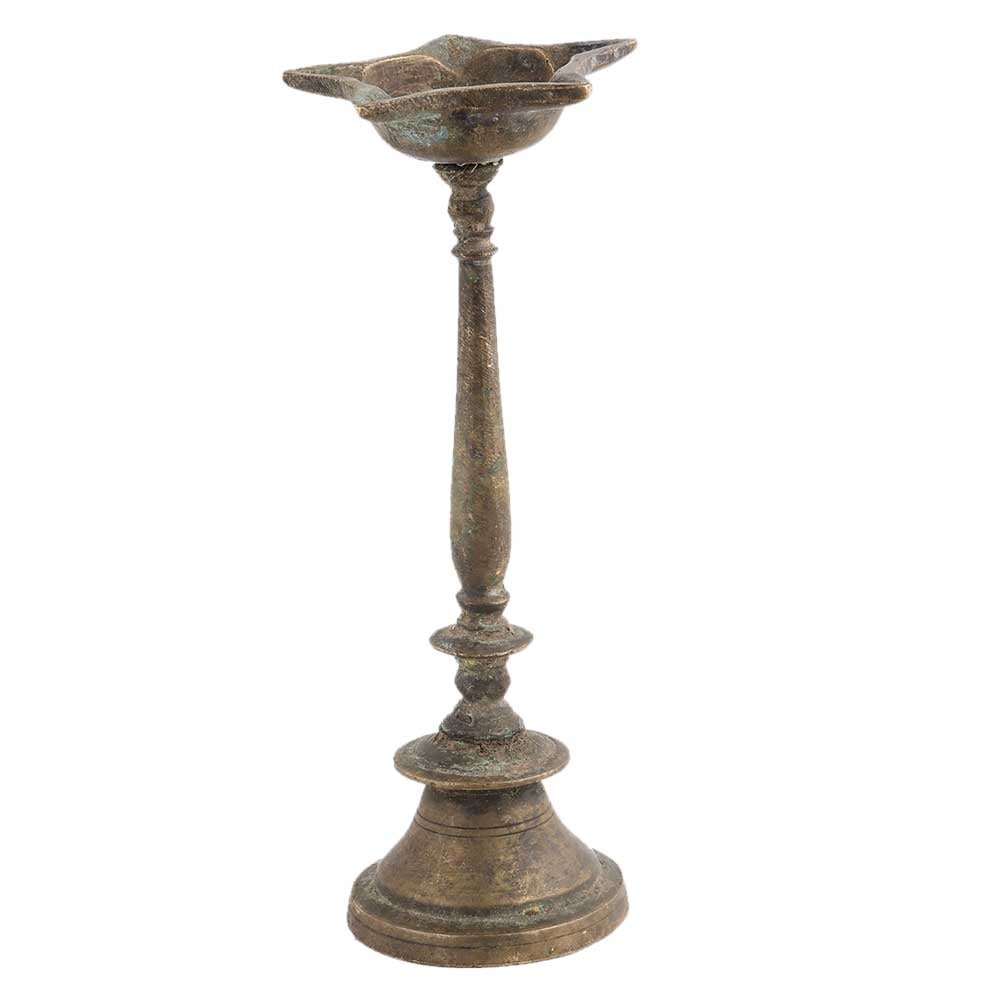 Brass Small Vintage Used Oil Lampstand With 5 Jyoti