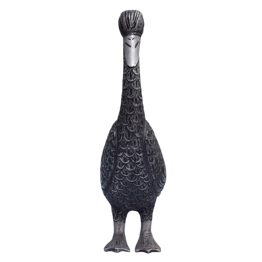 With the help of this cute life-size brass duck, you can add some natural elements to your design. The duck has a lovely patina, as exhibited, with a few minor stains that do not take away from its appeal. It has typical wear from use and age but is otherwise in excellent vintage condition. A beautiful piece of furniture that would enhance any design theme. This may be kept in both your bedroom and living room. It will improve your life's love, peace, and harmony. It makes a memorable return gift and is a great present for Diwali, weddings, housewarmings, anniversaries, and festival celebrations.