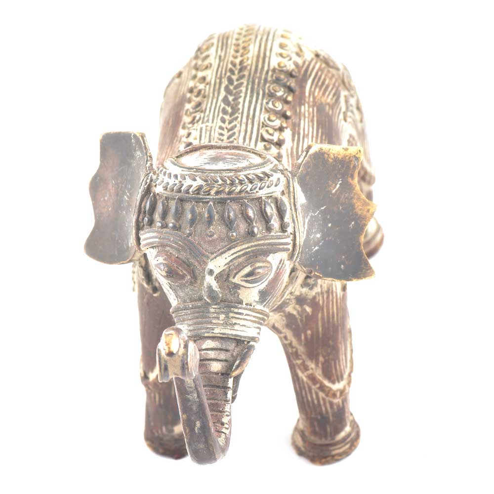 This is an old brass elephant made by the tribal using old traditional methods with trunk up and engraved design all over the statue. This is a wonderful showpiece and looks classy and elegant when placed in any corner of your house. It is also very auspicious to keep the elephant statue in the interiors of your house as it is a symbol of longevity and prosperity.