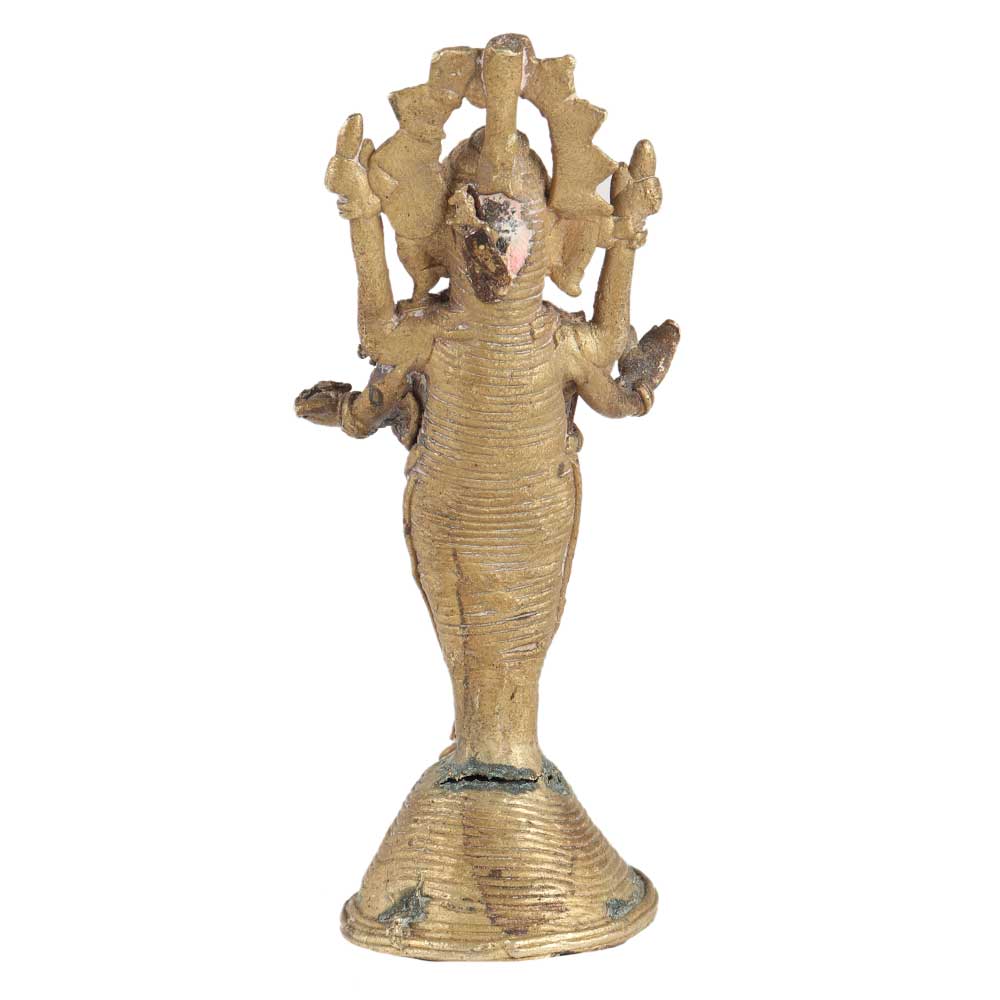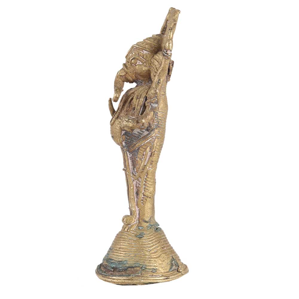 This Jewelry adorned  plump pot bellied  bellied ganesha stands on an elaborately decorated raised platform, carrying a nice (modak) in his left front hand and his cracked tusk through his right front head. The elaborate decoration depicts the object's face features, apparel folds, precious stones, and necessary accessories in considerable detail. Ganesha is among the most popular Hindu gods. He is Shiva and Parvati's son.