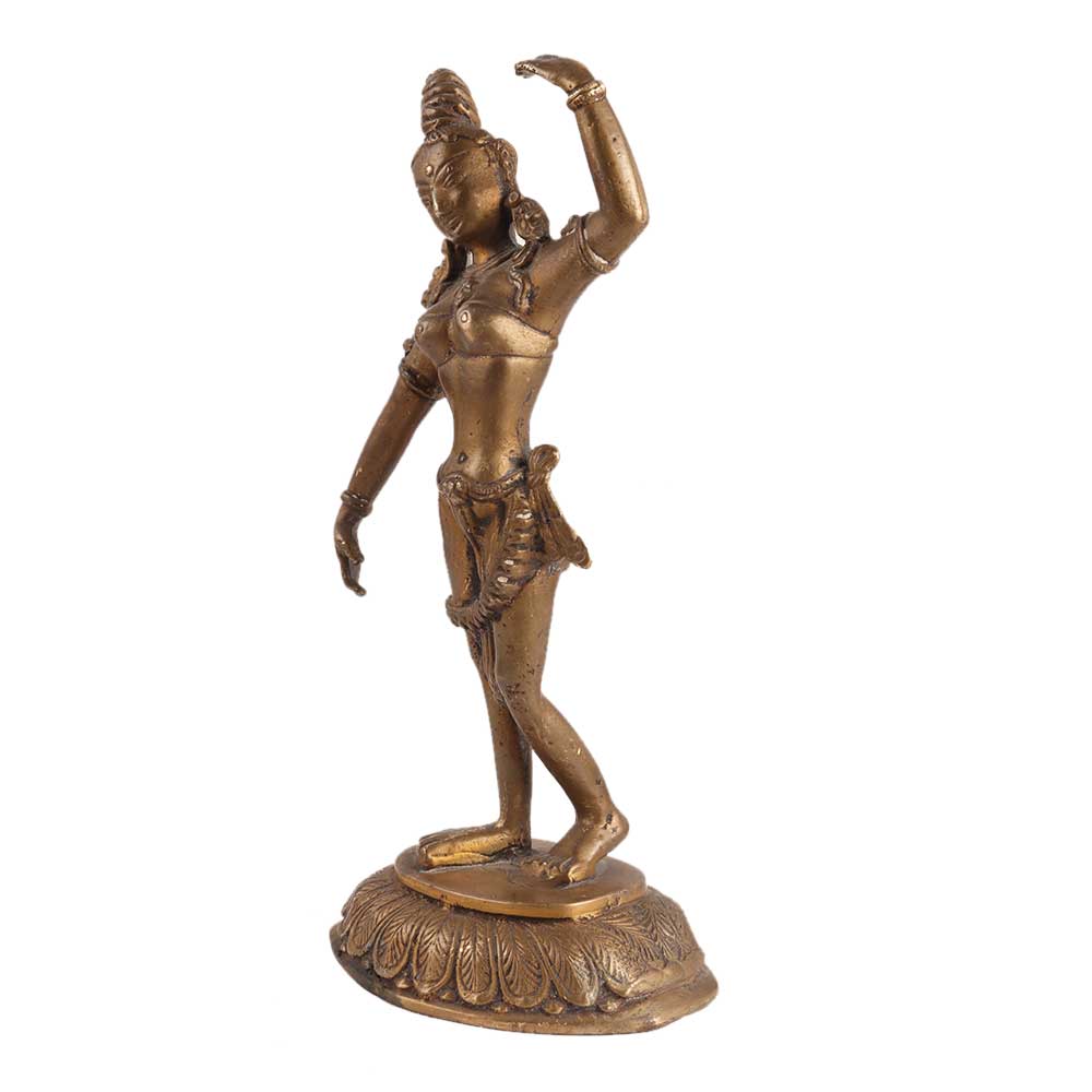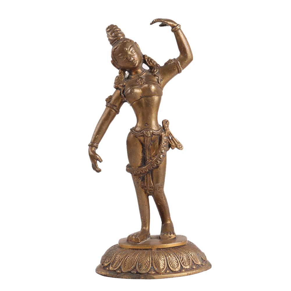 Nepalese sculpture is best known for its small religious figures and ritual objects made of bronze or copper alloy, but it also has other strengths. The Nepalese Newar people have long specialised in casting small bronze figures, mostly religious and especially Buddhist. The graceful proportions, the warm red/gold tone of the metal typical of Nepalese sculptures, and the intricate and elegant decorations make this sculpture stand out.