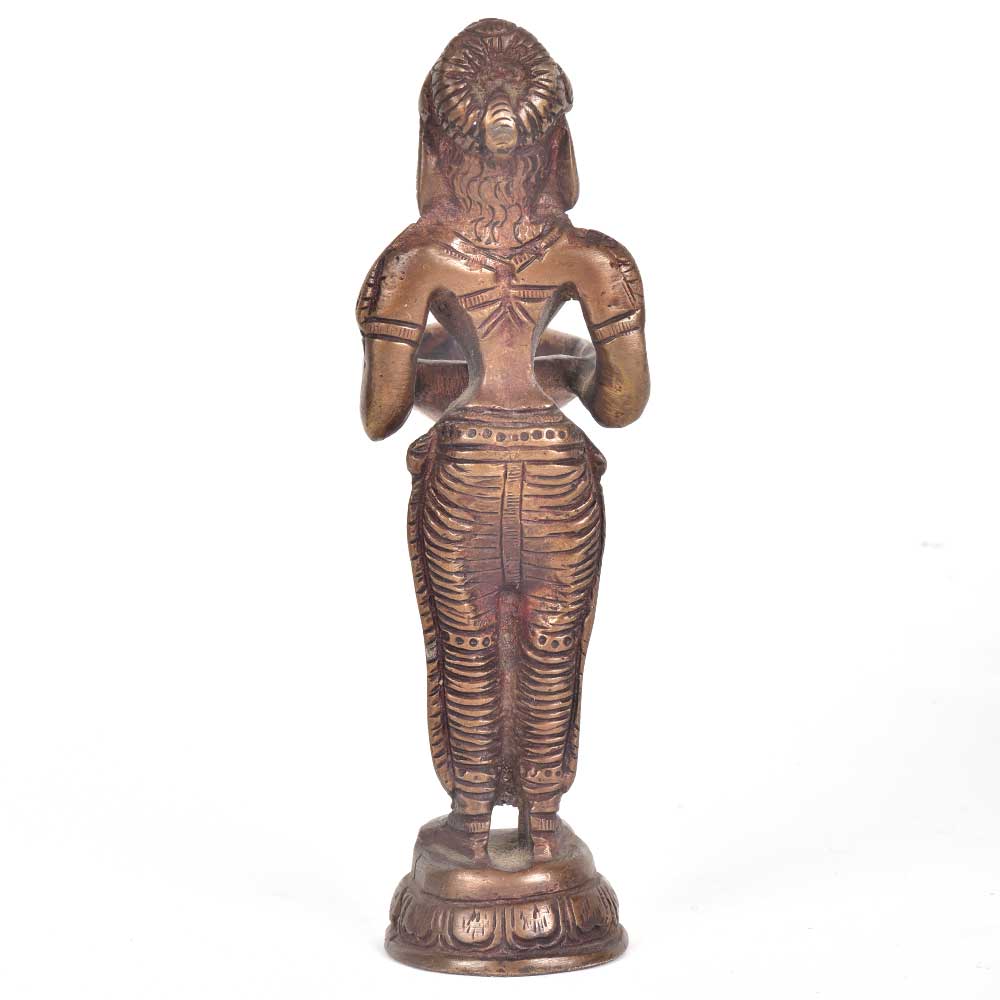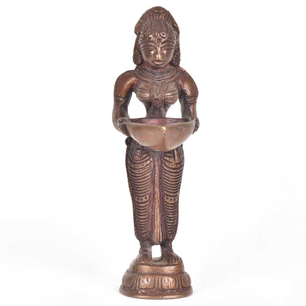 Handmade Hindu Religious Sculpture made of high quality brass shows a lady holding a diya in her hand . This is used in auspicious occasions and also as a home decor product.An excellent Thanksgiving Gift, Anniversary Gift, , Birthday Gift, Wedding Gift,diwali gift,Goodwill Gift,Freindship Gift,Valentine Gift,Christmas Gift etc.