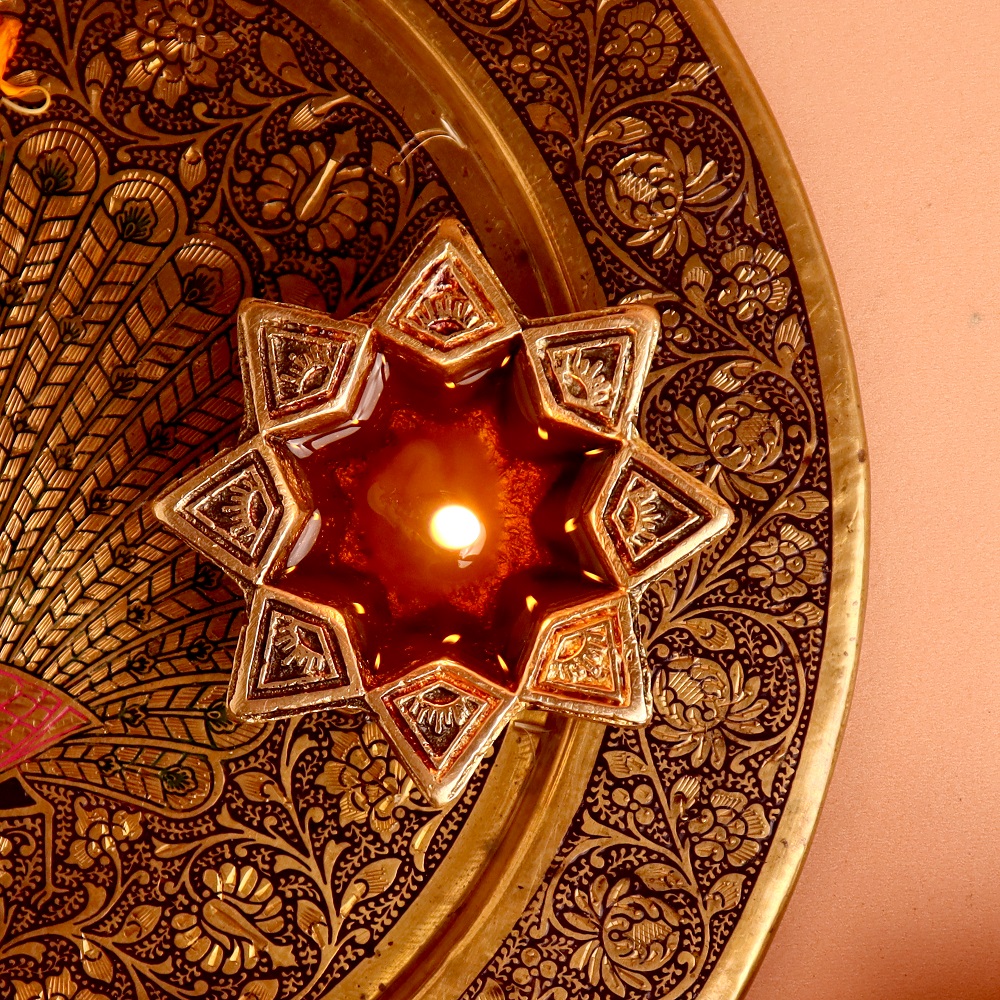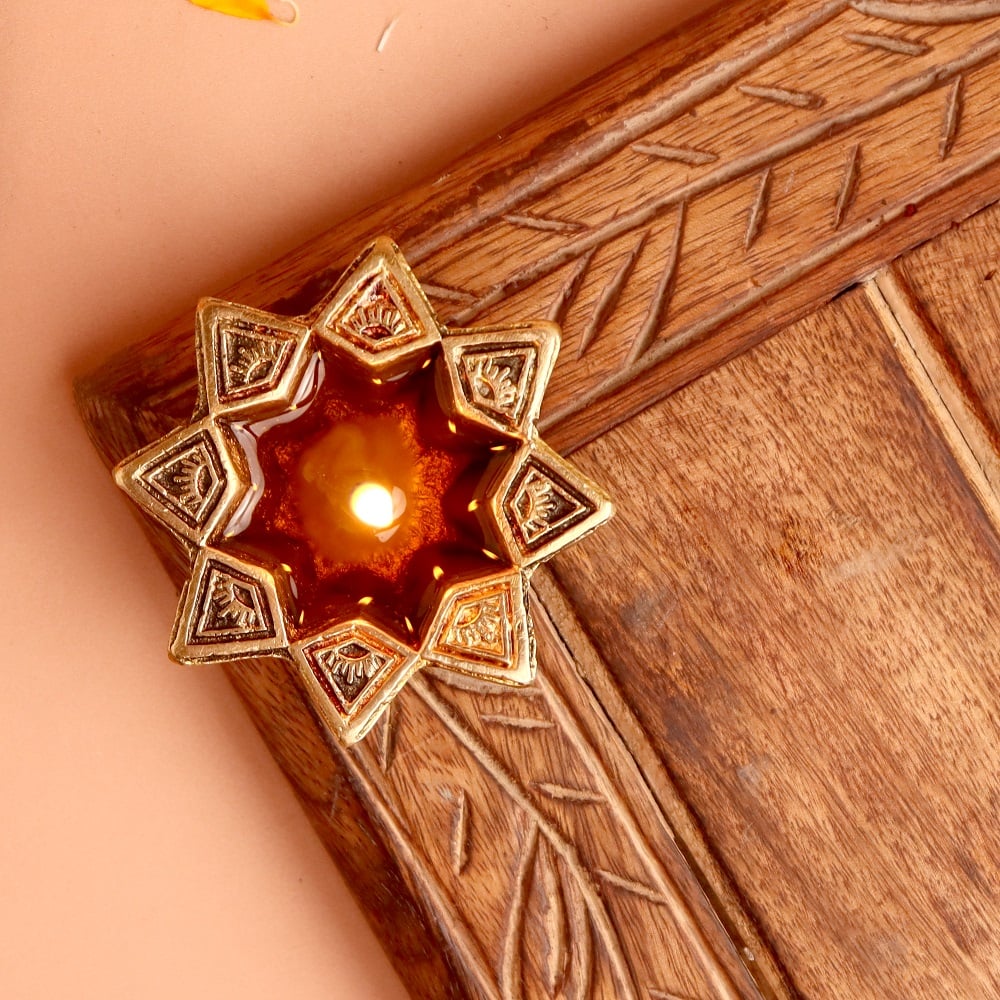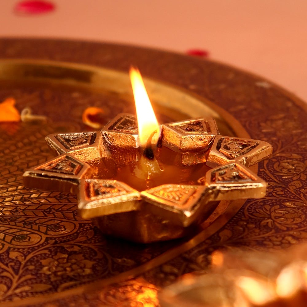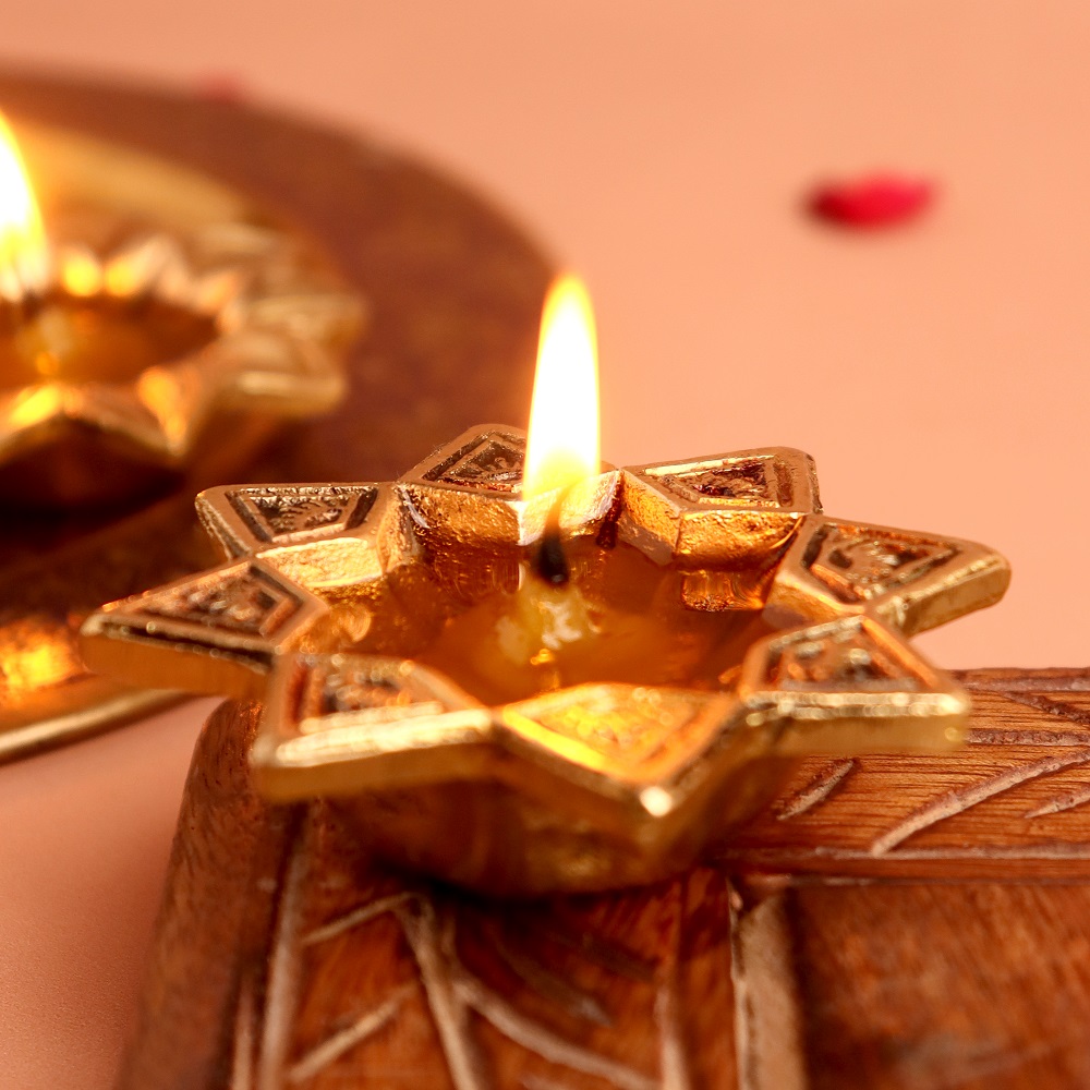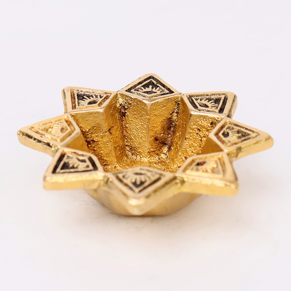 Bring divine radiance to your festive celebrations with this Brass Starry Flower Oil Lamp, designed for Diwali decoration, puja rituals, and auspicious gifting. Inspired by a starry floral pattern, the diya reflects both celestial energy and sacred purity. Handcrafted in solid brass with a glowing golden polish, it adds timeless beauty to temples, homes, and festive occasions.