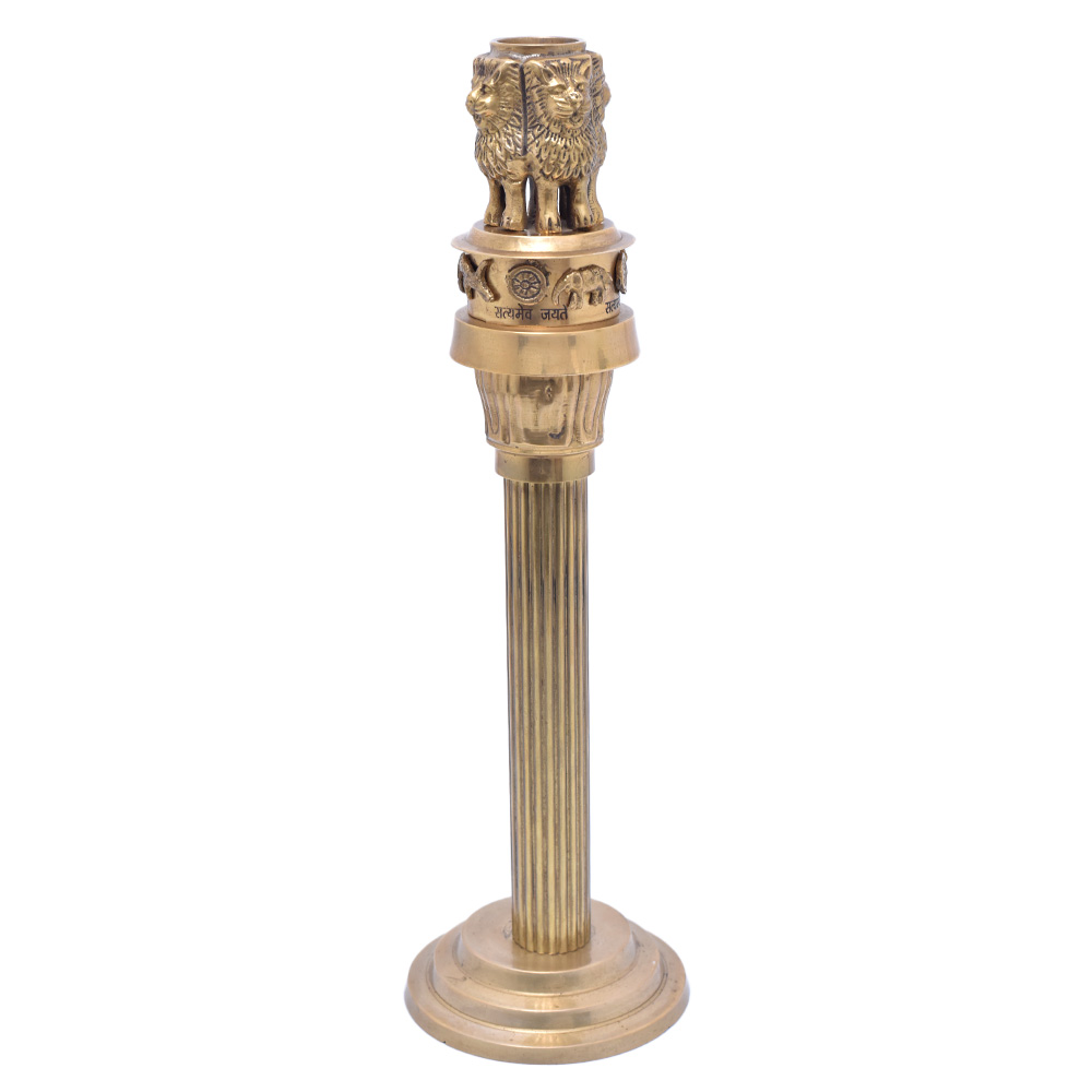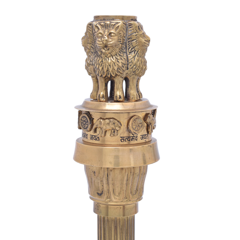 A showpiece replica of the Ashoka pillar India's national symbol is the Ashoka Pillar. It is adapted from the triumph pillar Ashoka built during his rule at Sarnath, known as the Lion Capital of Ashoka. Several monuments were built throughout that time period to symbolize the ruler's victory. These four lions stand for a strong and formidable force guarding the realm from all sides. Drawings of a bull and a horse are below it, and in the middle of them is a chakra that is featured on the Indian national flag. The Ashoka Pillar handicraft is a genuine honor to acquire because it represents the Indian national emblem. At the feet of an Ashoka Pillar made of brass are four lions standing back to back, a horse, a bull, an elephant, and a lion. A long stand is also affixed to three step bases. a suitable present for a patriot on Independence Day and Republic Day.