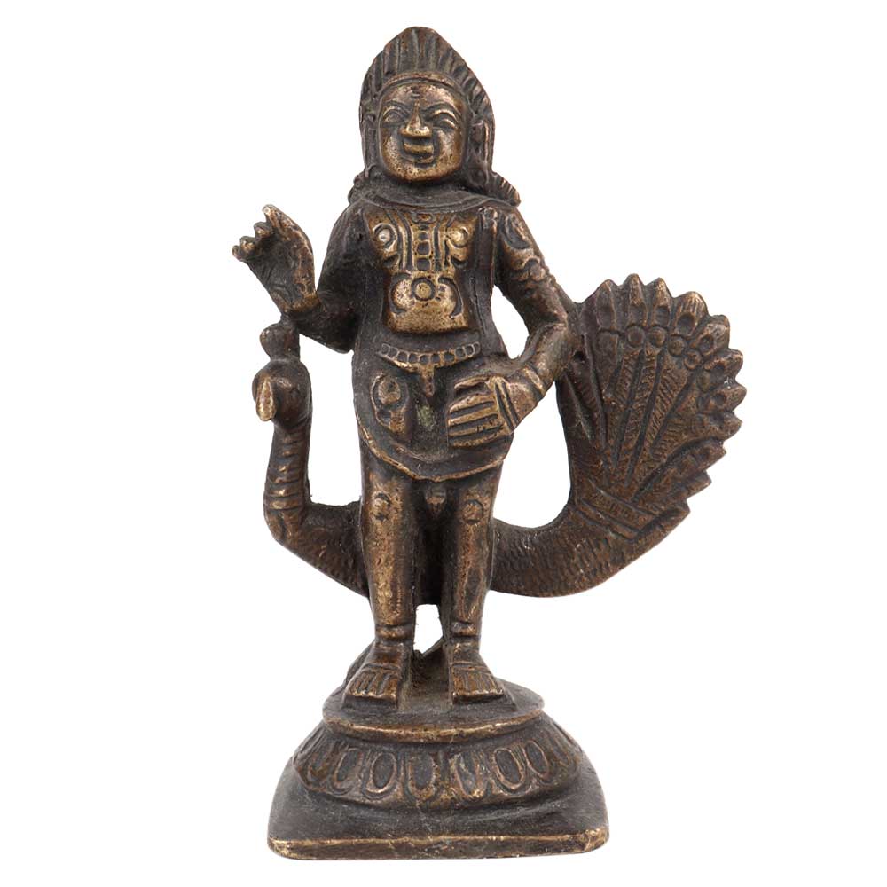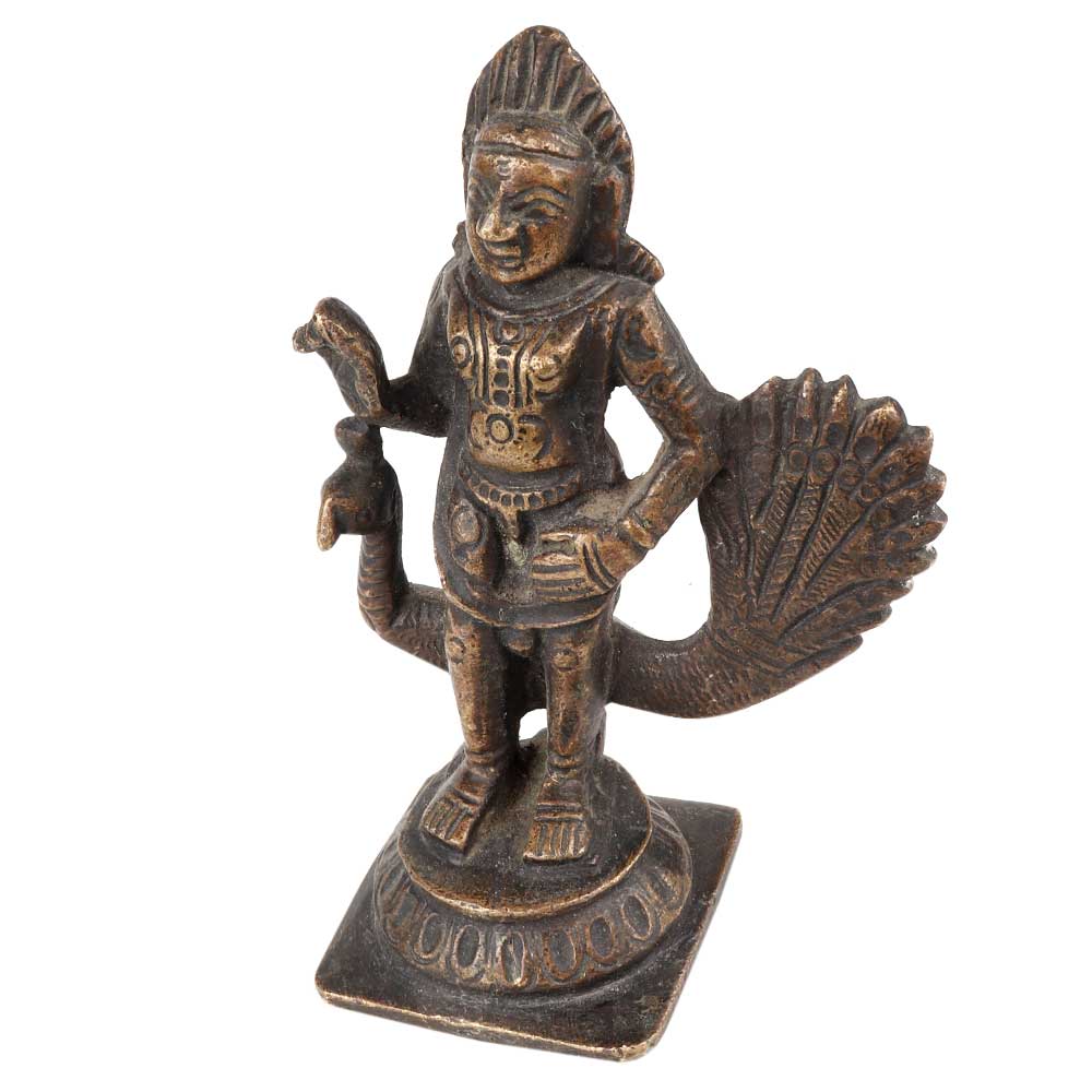 • Brass Statue Of Hindu God Kartikeya Murugan With Peacock