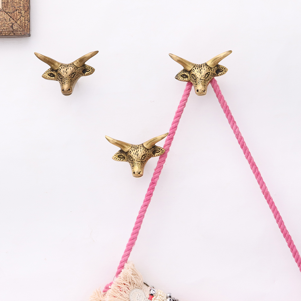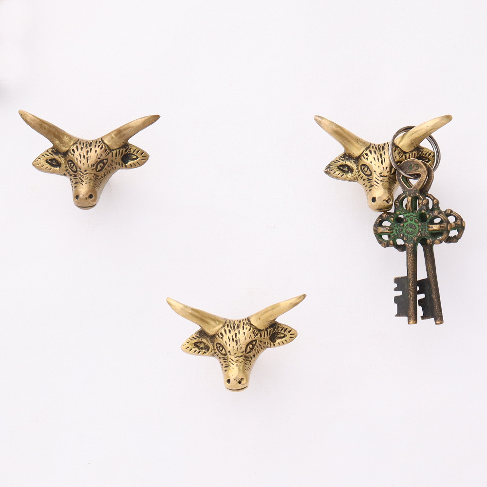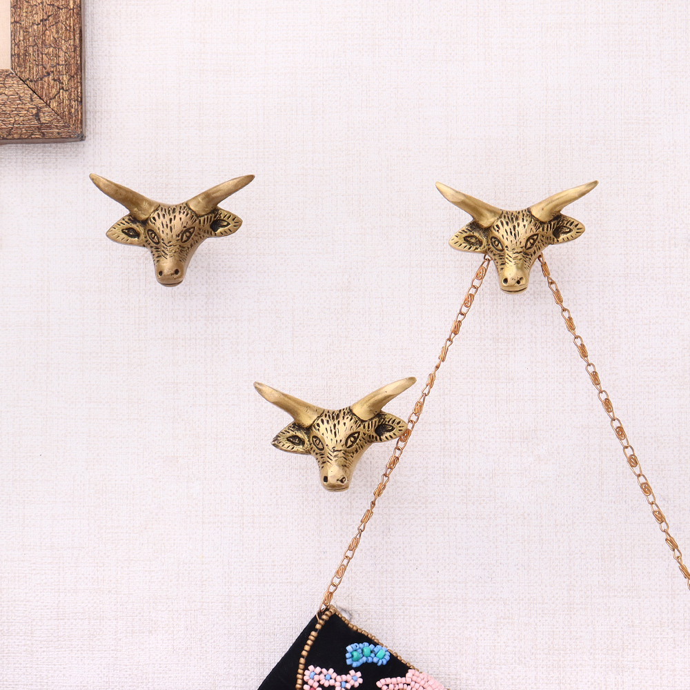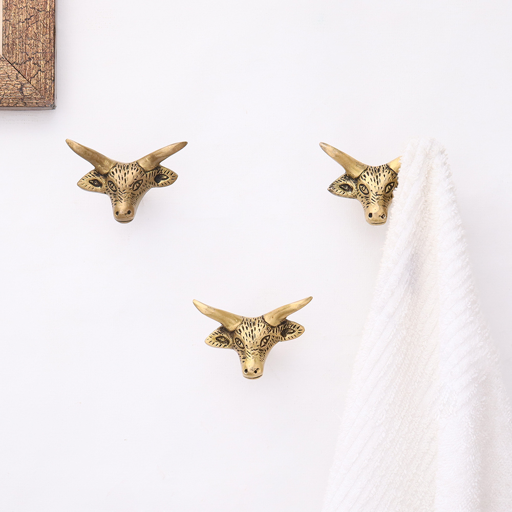 Make a bold statement with the Brass Steer Head with Horns Wall Mounted Coat Hooks – Pack of 3. These handcrafted wall hooks are cast in pure brass and shaped like detailed steer heads, complete with curved horns for an eye-catching and rugged aesthetic. Designed to bring the spirit of the wild west or a rustic ranch into your home, each hook blends form and function. Strong enough to hold your daily essentials, yet artistic enough to enhance your decor, these brass hooks are where raw craftsmanship meets practical elegance.