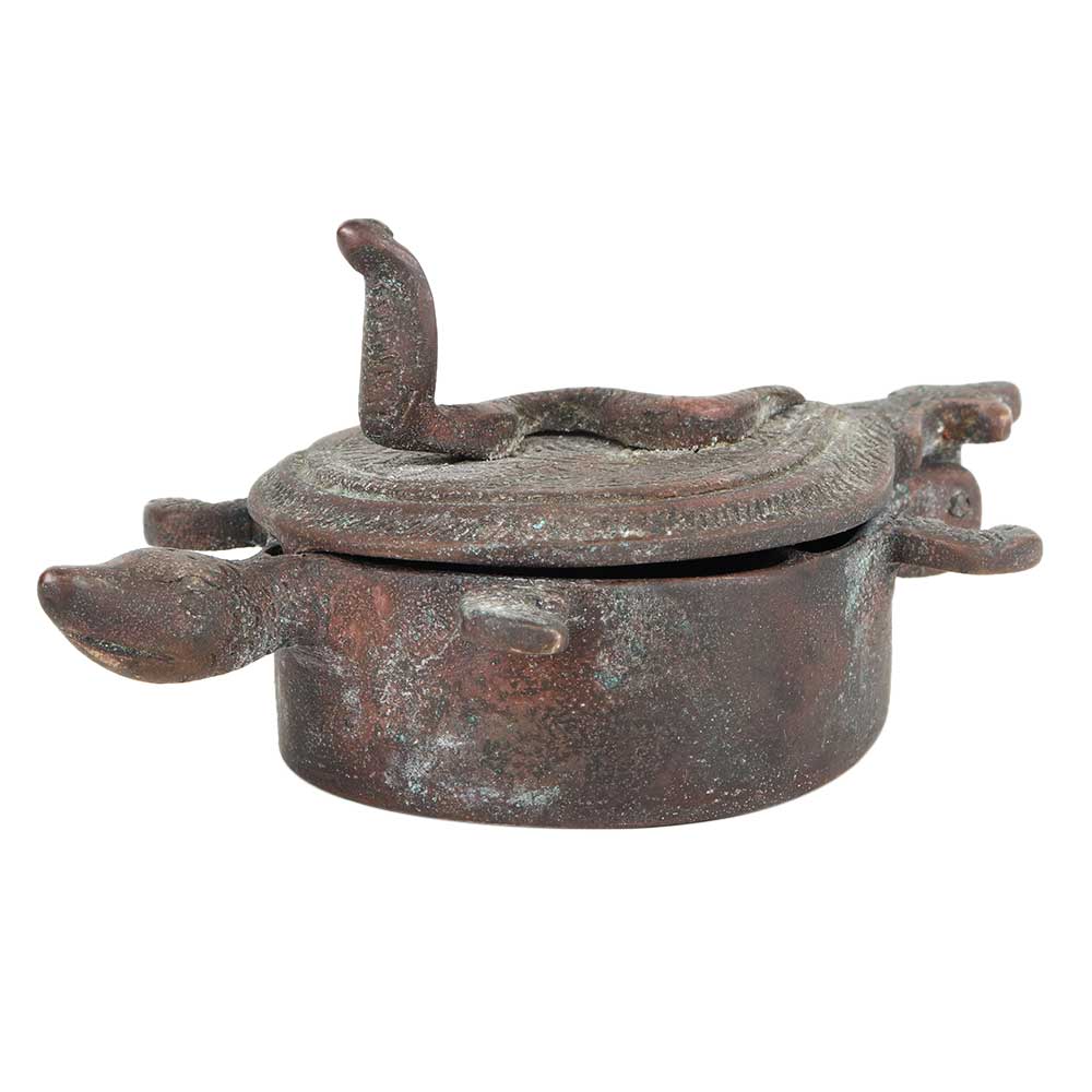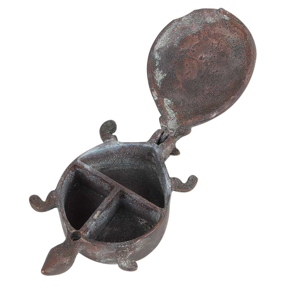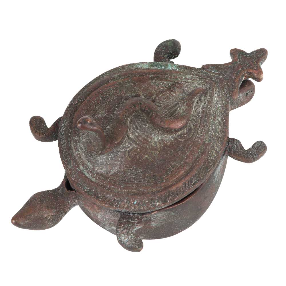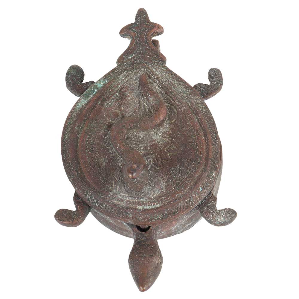 Handmade Brass Storage box with cobra engraved on the lid of the box. Keep your essential puja items, jewelry or other important things in turtle shaped box. Use for home decoration or gift it to your friends and relatives on diwali, new year , anniversary or important occasions.