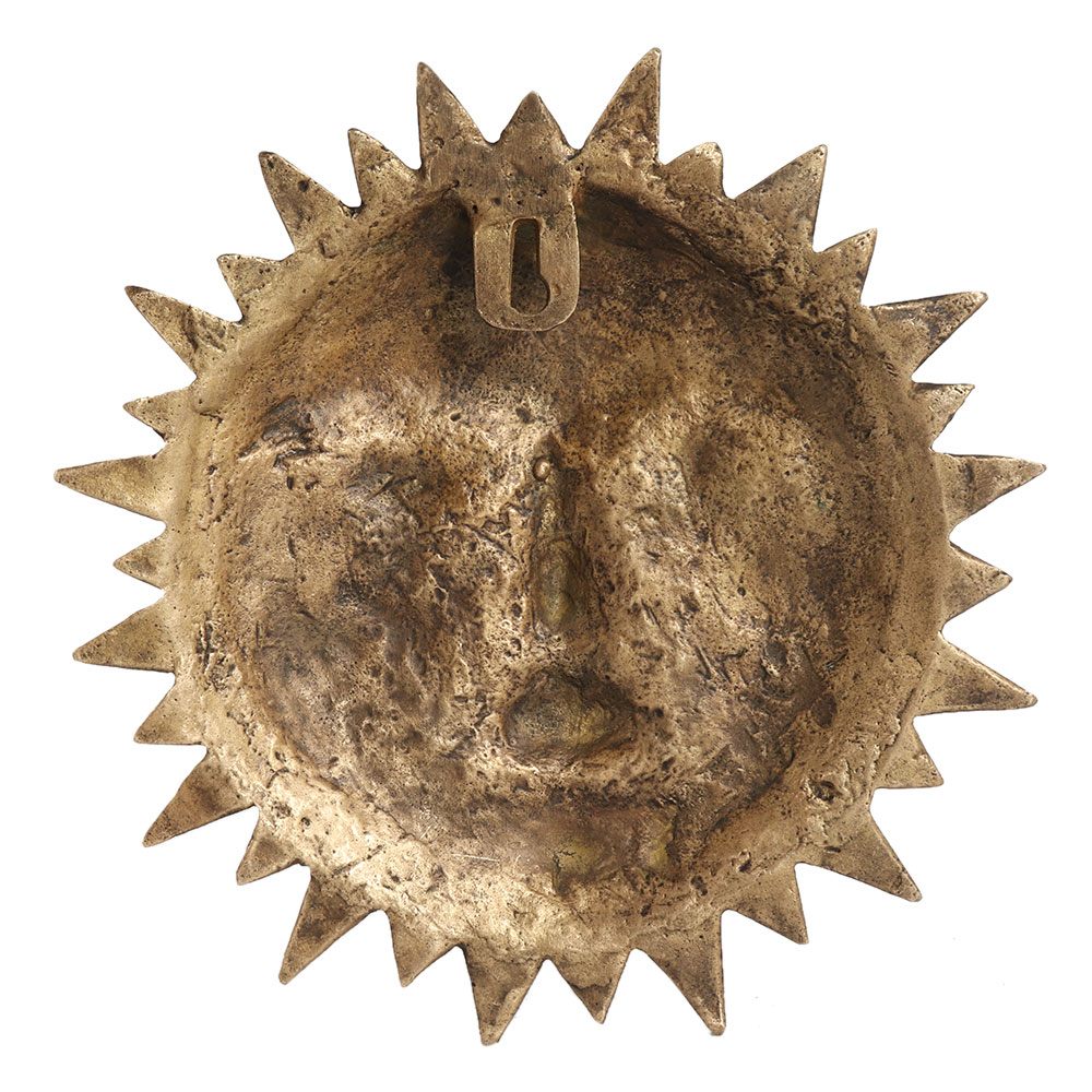 This sun face god or Surya wall hanging is carved from brass alloy. It was handmade by skilled Indian workers. It has a hook on the back to hang it on the wall. Hang it in an eastern direction in your home, office, restaurant, hotel or shop to spread positivity. If you are one of those who are not able to get sun rays directly or physically, hang it in your room. You can also hang this on main door or in your pooja room. A perfect gift wedding, birthday or spiritual occasion.