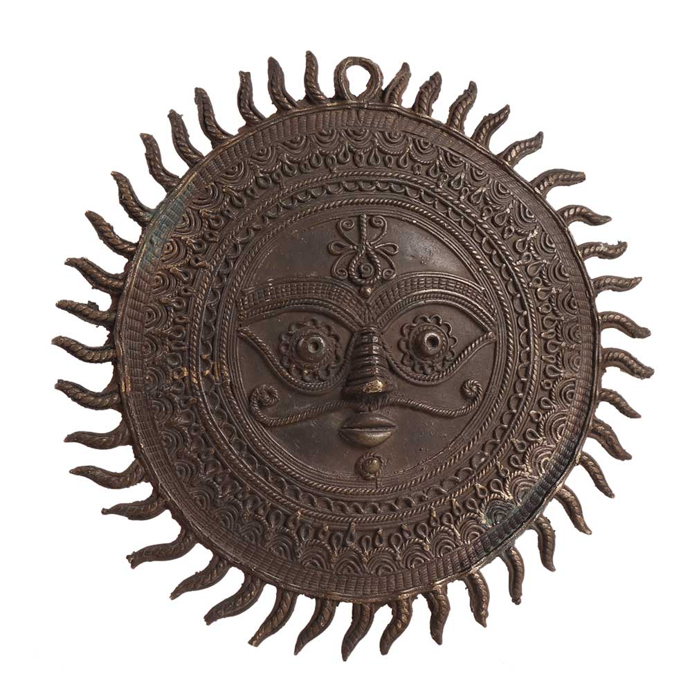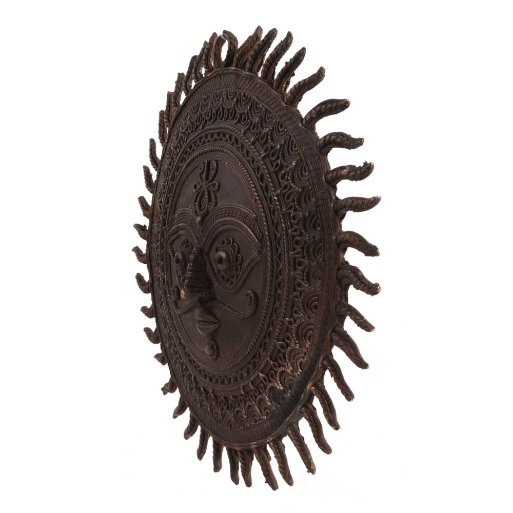 This brass sun wall hanging is an antique handmade piece by artisans that was primarily used as door decor. A lovely and elegant brass wall hanging with a personification of the Sun in the centre. This is the ideal Valentine's Day gift, special event, wedding, or house warming party gift, wall hanging, contemporary home decor, and many other occasions.