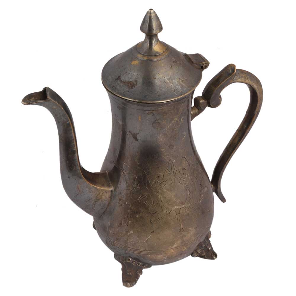 • Brass Tea Coffee Pot With Engraved Floral Design