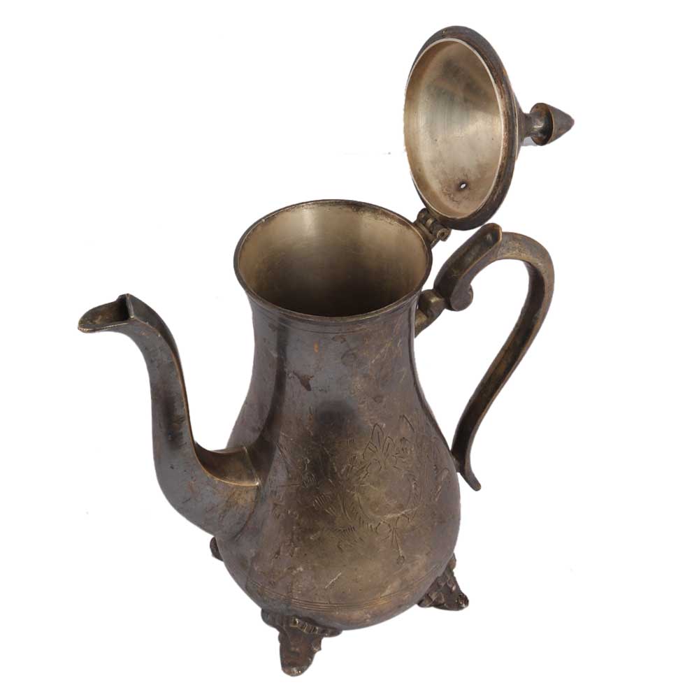 Brass Tea Coffee Pot With Engraved Floral Design