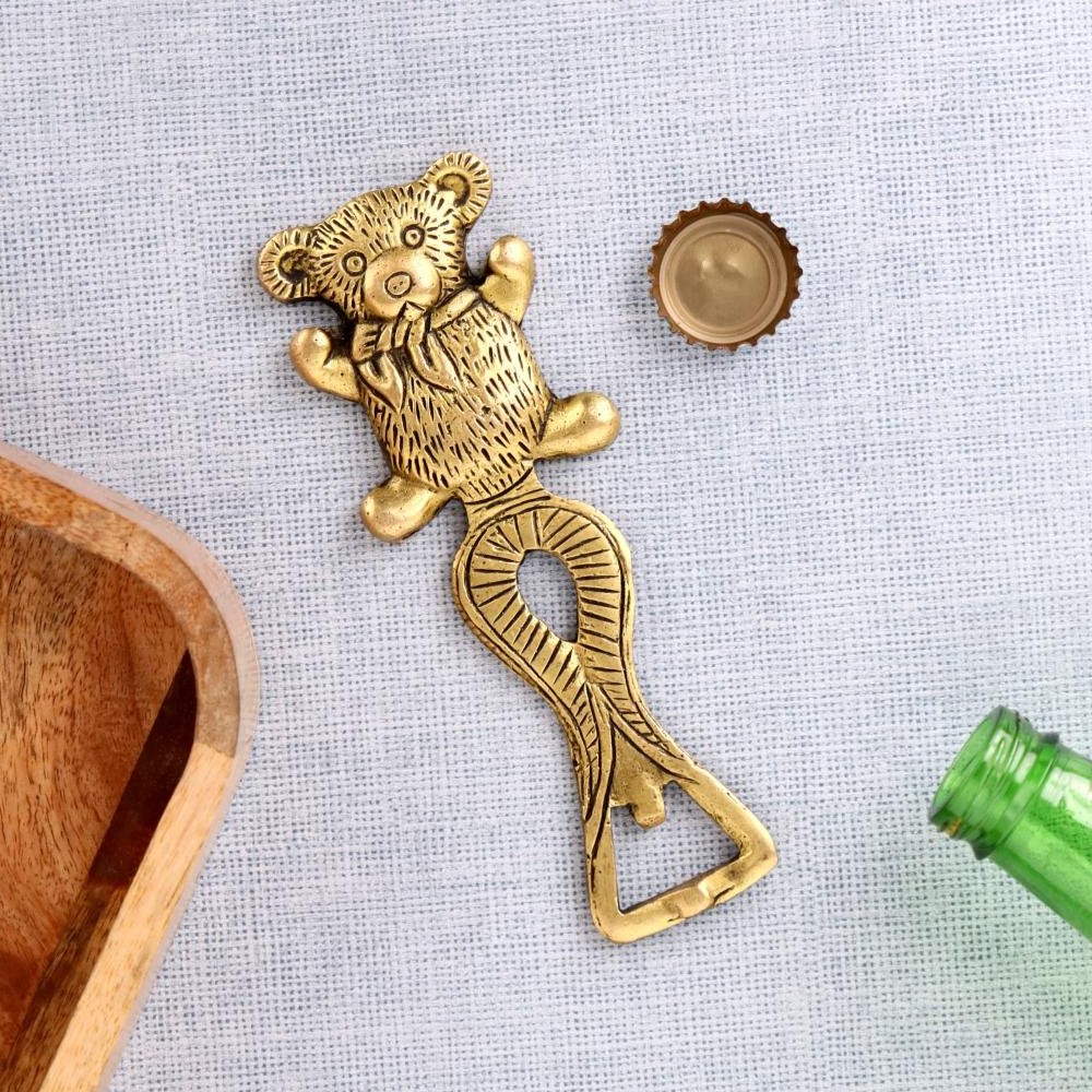 A Perfect Addition to Your Home Bar, Here is a Bottle Opener in the Form of a cute Teddy bear . Use to Open Any Type of Wine Bottle, Soda Bottle, Sauce Bottle. This Stylish and Innovatively Designed Corkscrew is Made of Premium Quality Brass Metal, Ensuring Good Strength and Durability. Bring Home This Premium Bottle Opener and Add Fun Touch to Your Bar.