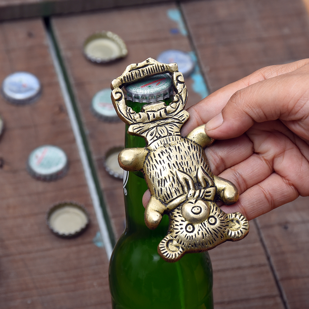 Indianshelf.com for bulk/wholesale orders.Indianshelf.us for personal purchases.The Brass Teddy Bear Bottle Opener is a delightful blend of charm and utility. Ideal for adding a whimsical flair to your kitchen or bar, this cute bottle opener is crafted in the shape of a teddy bear. Made from durable brass, it not only fulfills its function but also enhances your home decor or makes for a thoughtful gift.