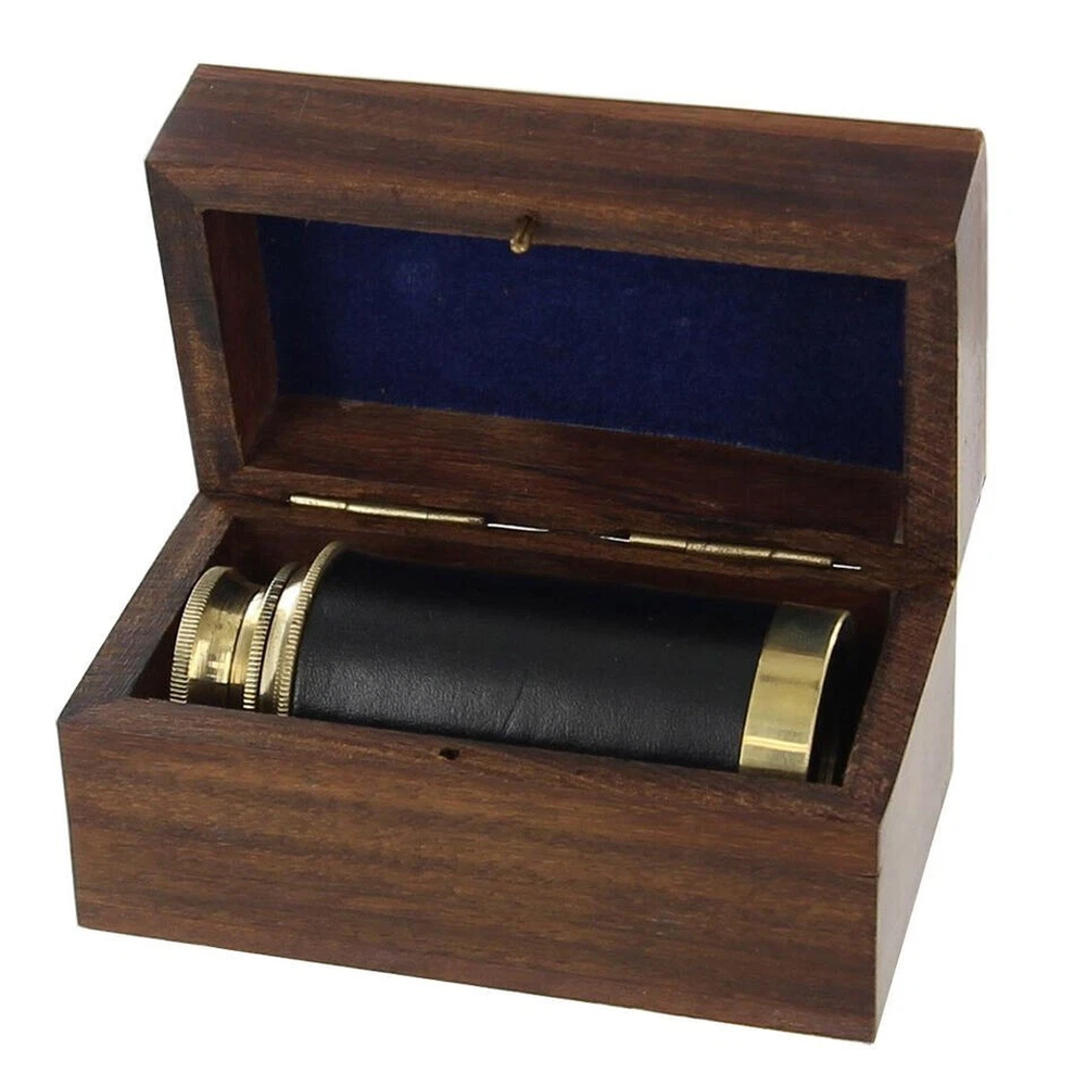 Brass Telescope Black Grip Wooden Box Handcrafted