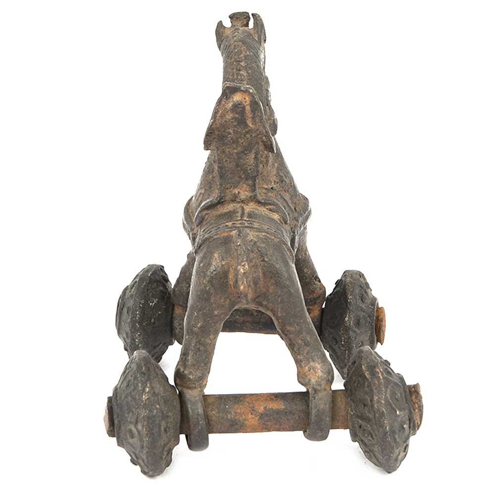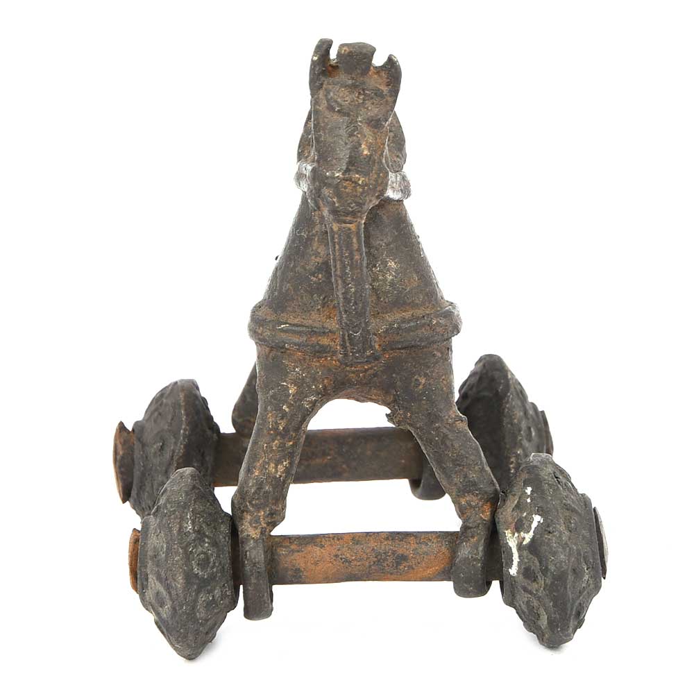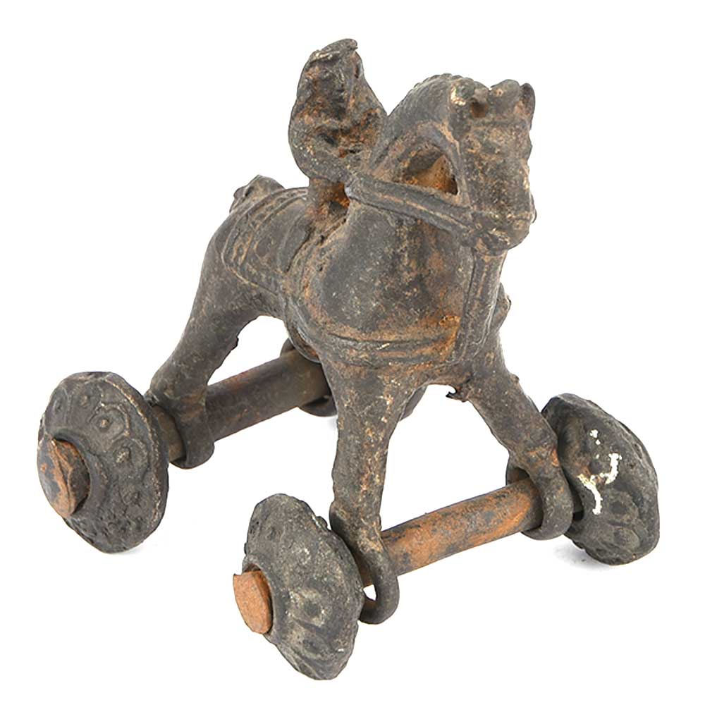 Handmade Temple Toy is a Rider on Horse Figurine That has Wheels Attached to It. The Wheels are Irregular but the Toy Still Rolls in All Directions.