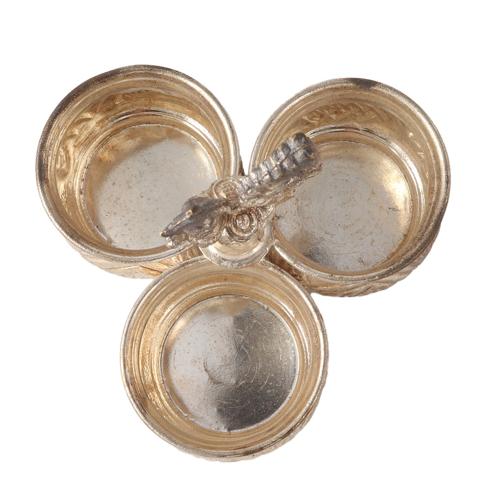 • Brass Three Cup Brass Kumkum Holder In Silver Finish