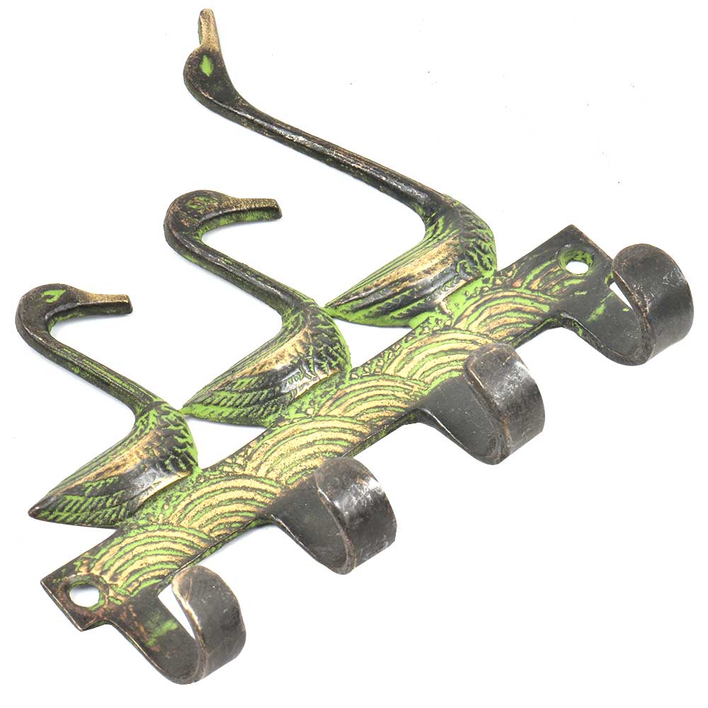 The Brass Three Ducks Four Pegs Wall Hooks is a blend of rustic storytelling and utility. Handcrafted from solid brass and finished with an antique-style patina, this hook rack features three ducks in a row—sculpted in charming detail above four sturdy pegs. Perfect for adding both personality and purpose to your entryway, mudroom, or kitchen, it's a statement piece that organizes without sacrificing style.