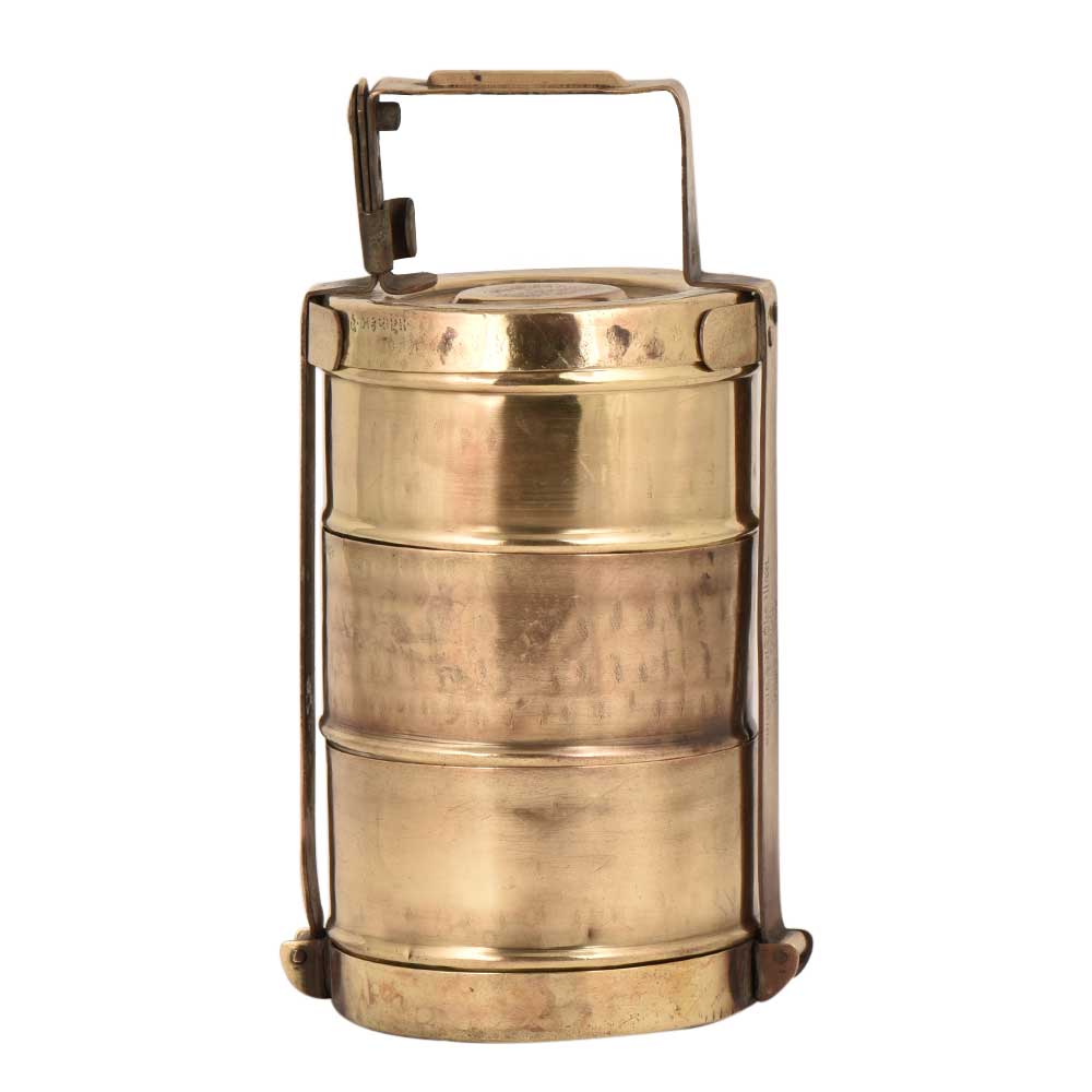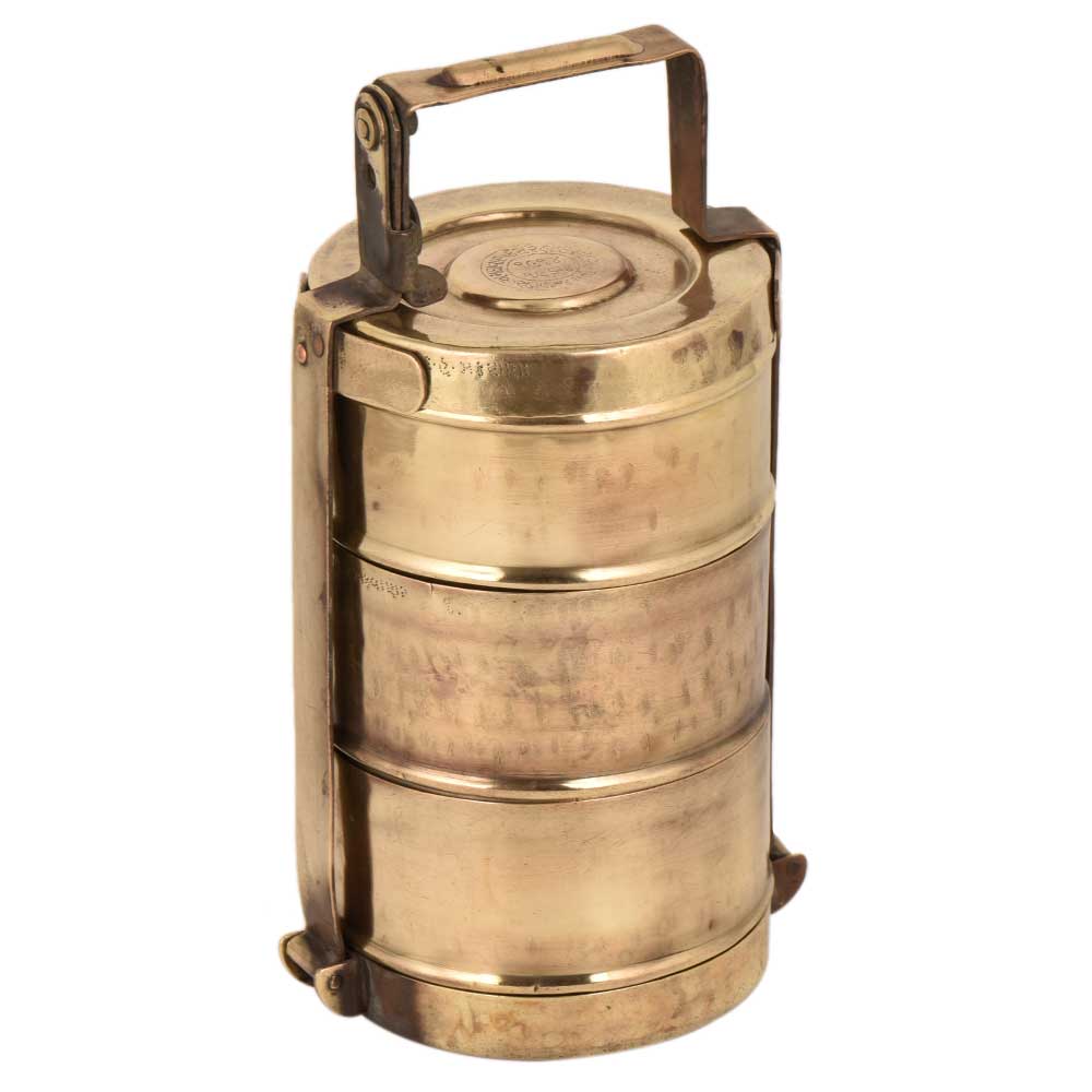 Brass Three Tier Brass Tiffin Box With Thick Frame And Locking System