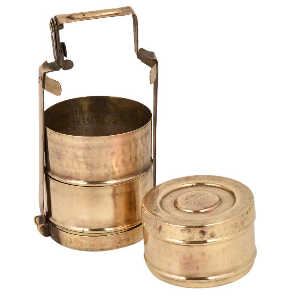 • Brass Three Tier Brass Tiffin Box With Thick Frame And Locking System