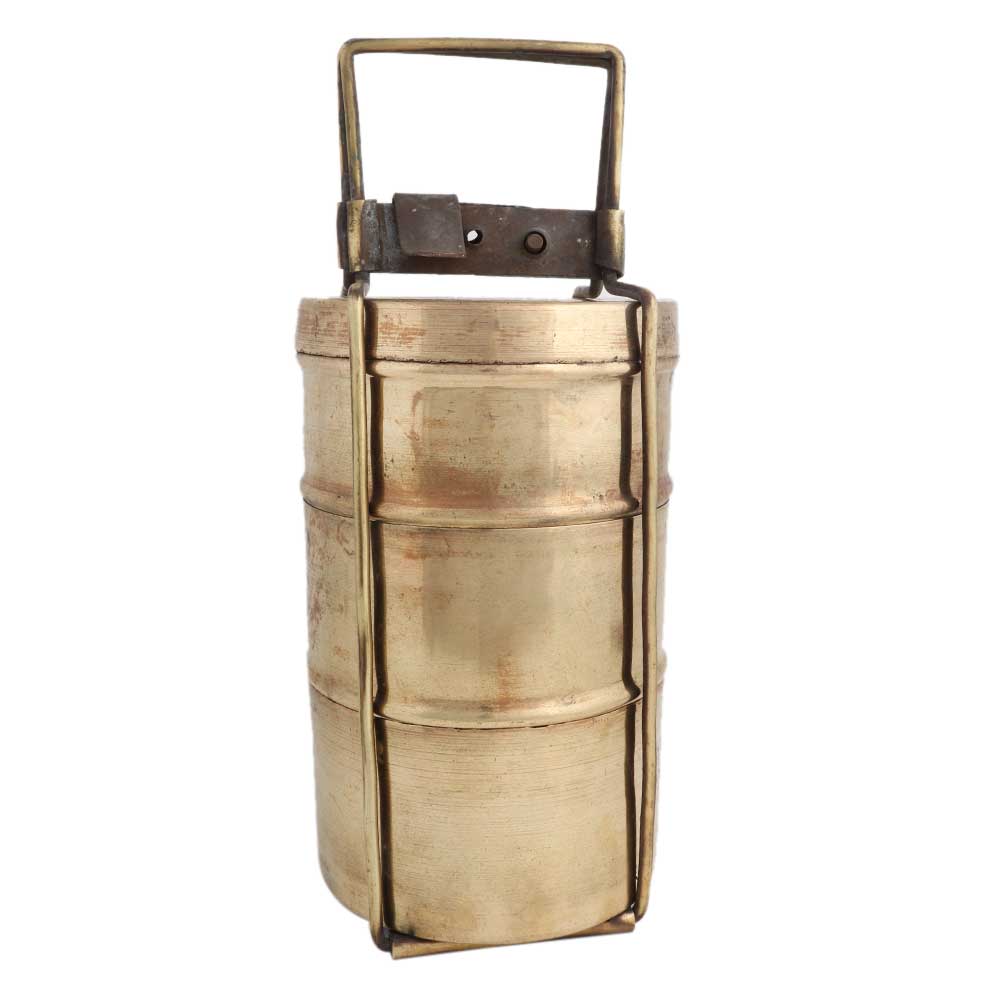 • Brass Tiffin Box Or Lunch Box With Three Separate Containers