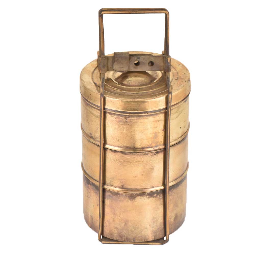 • Brass Tiffin Box Thee Tier Containers For Home Decoration