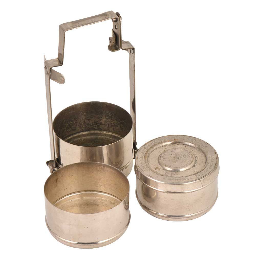 Brass Tiffin Box Three Tier Lunch Box With Silver Finish