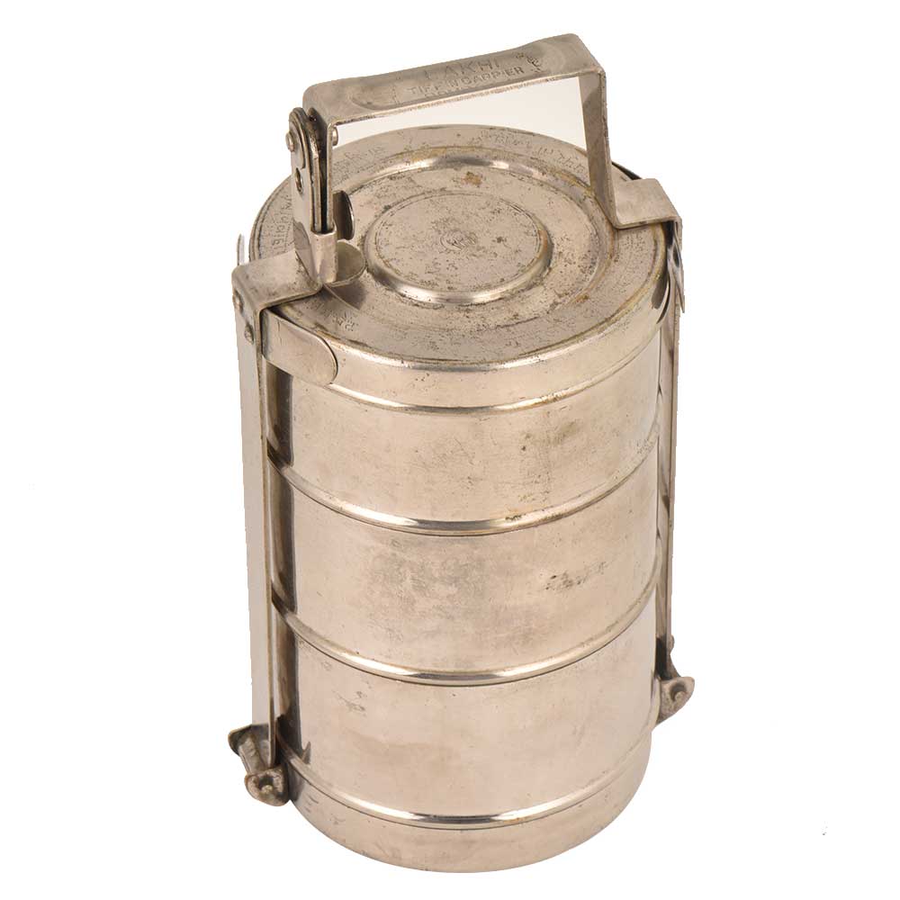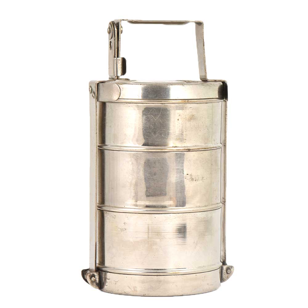 • Brass Tiffin Box Three Tier Lunch Box With Silver Finish