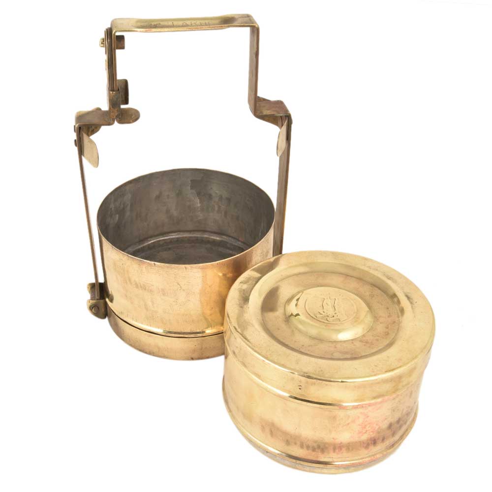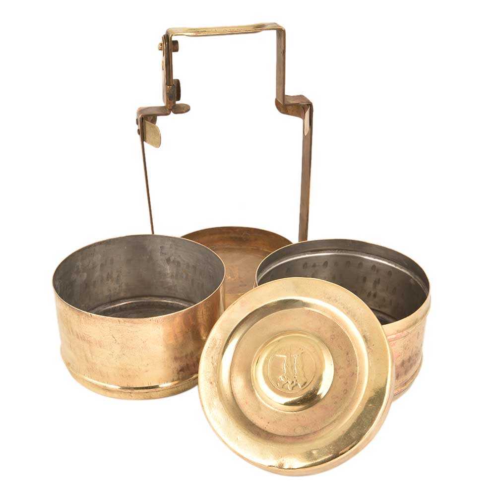 • Brass Tiffin Box Two Compartment Lakhi Engraved Kitchenware