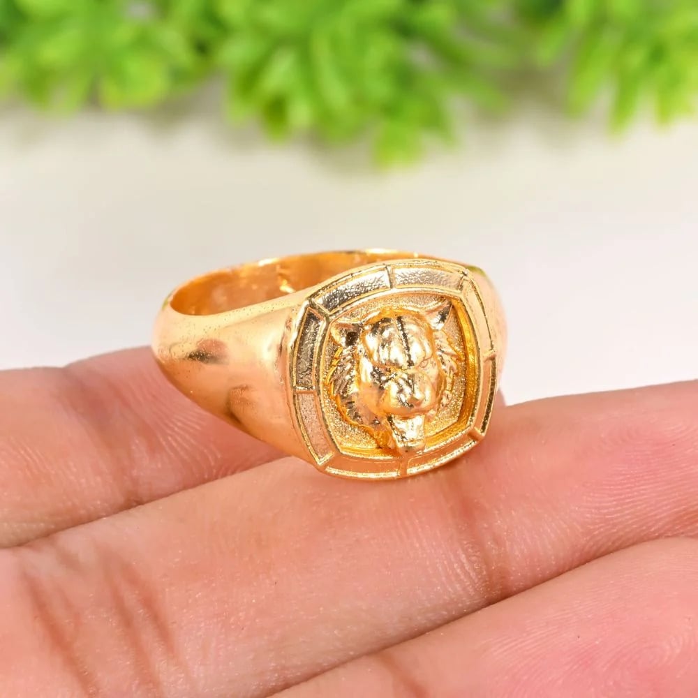 The Brass Tiger Designer Ring for Men with 22K Gold Plating is a striking embodiment of strength, determination, and fearless spirit. Handcrafted in brass and finished with radiant 22K gold plating, this ring features a bold tiger motif known for symbolizing power and unwavering confidence. Its solid yet wearable form makes it suitable for daily statement styling. Designed as a meaningful gift for him, this ring blends commanding symbolism with refined artisan craftsmanship.
