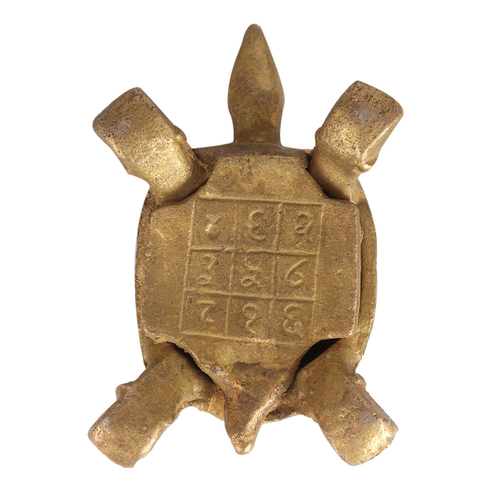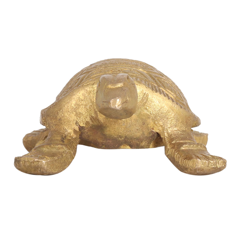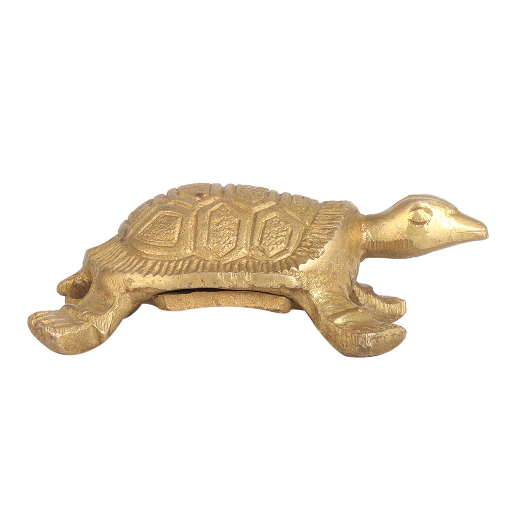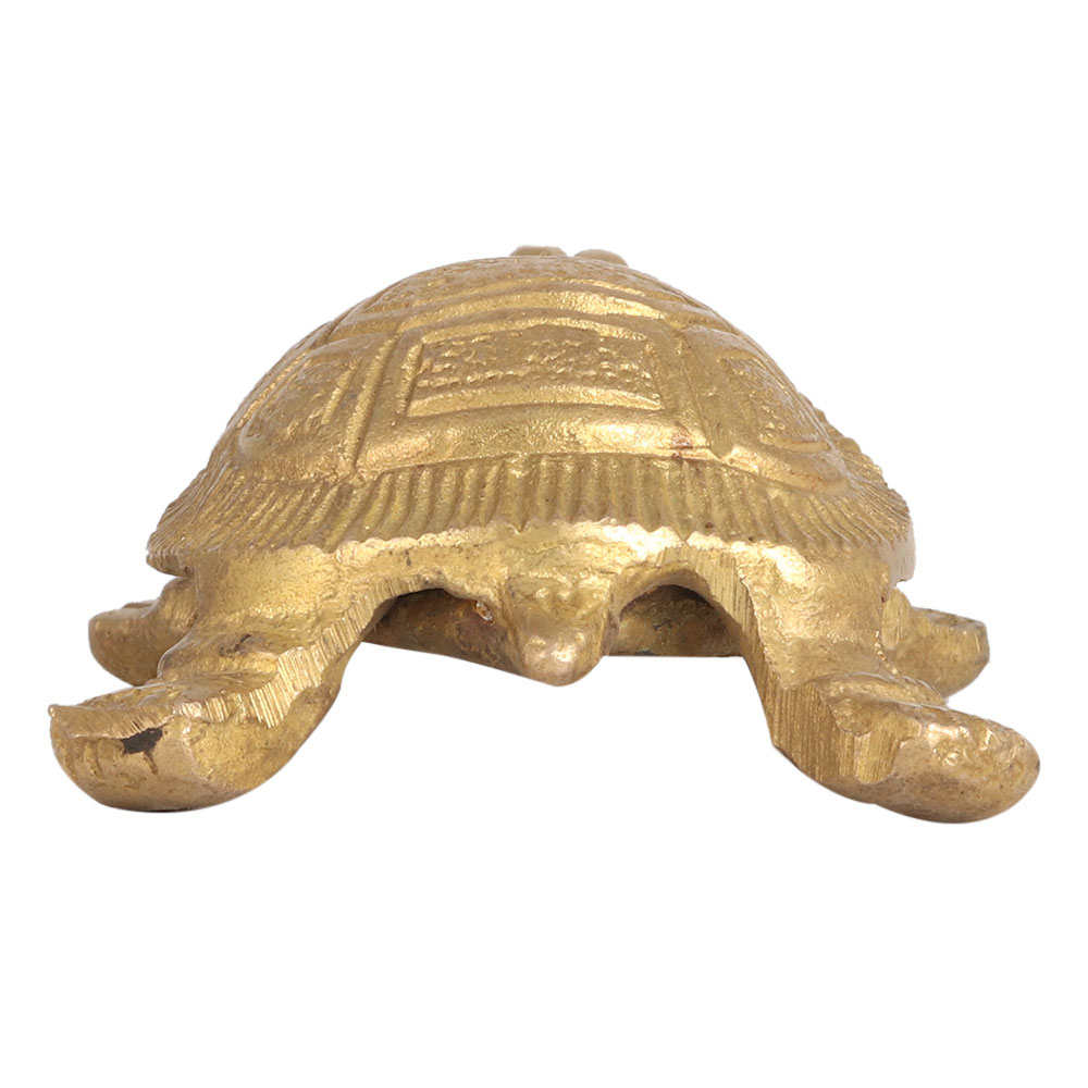 A stunning brass Vastu tortoise that will add an attractive look to your living room. Place this turtle statue in north direction of your home or office in a bowl filled with water so that its half face is covered with water to attract wealth and good fortune. The turtle is engraved with a Vastu Yantra, which prevents the penetration of negativity into the house or office and brings positivity. This turtle is handmade with intricate details with excellent workmanship to enhance the interiors of your living room. An ideal gift for festive and special occasions for your loved ones.